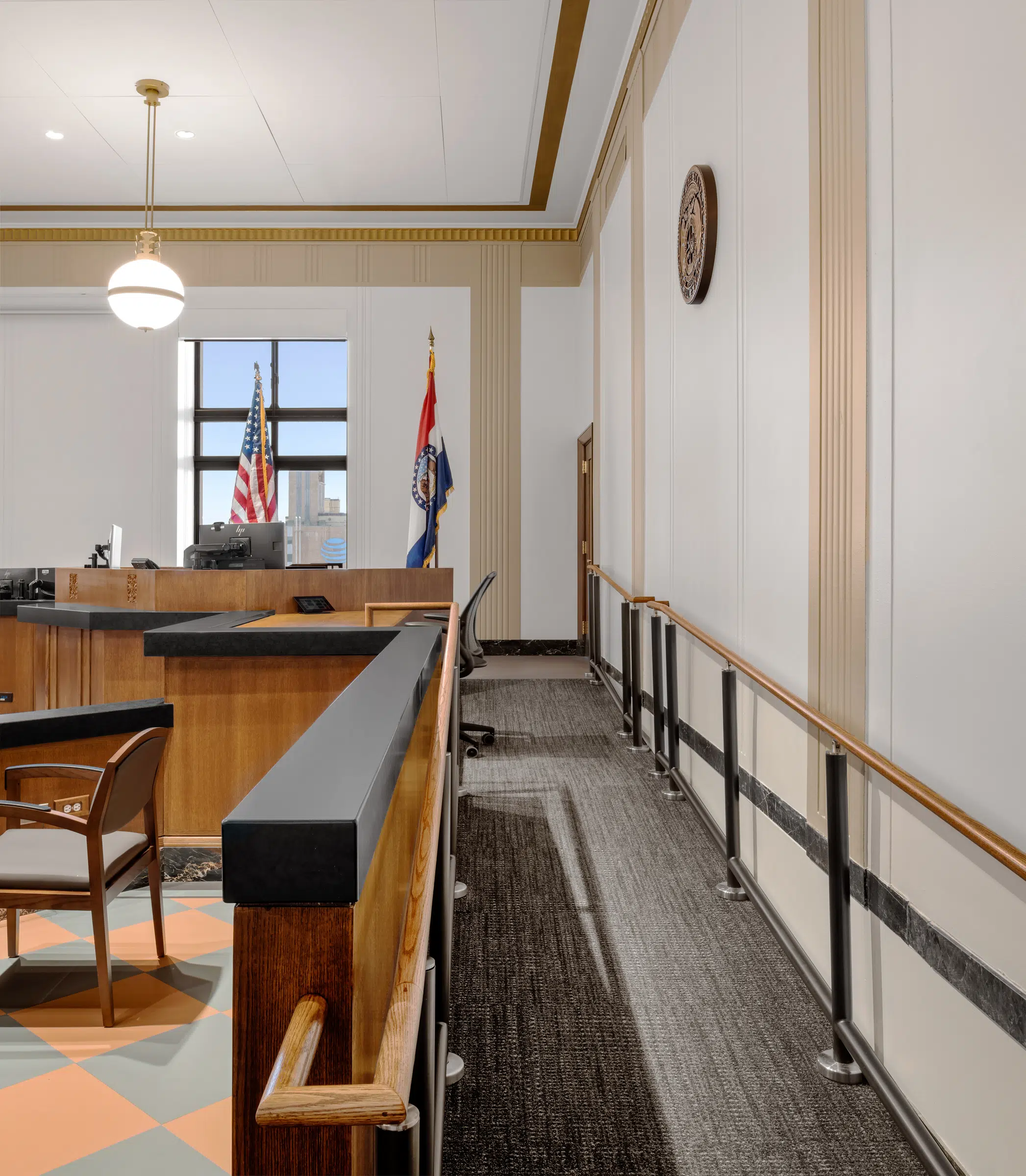 Division 1 of the Jackson County Circuit Court now includes a state-of-the-art, fully accessible courtroom, while maintaining the historical nature of the 90-year-old courthouse.