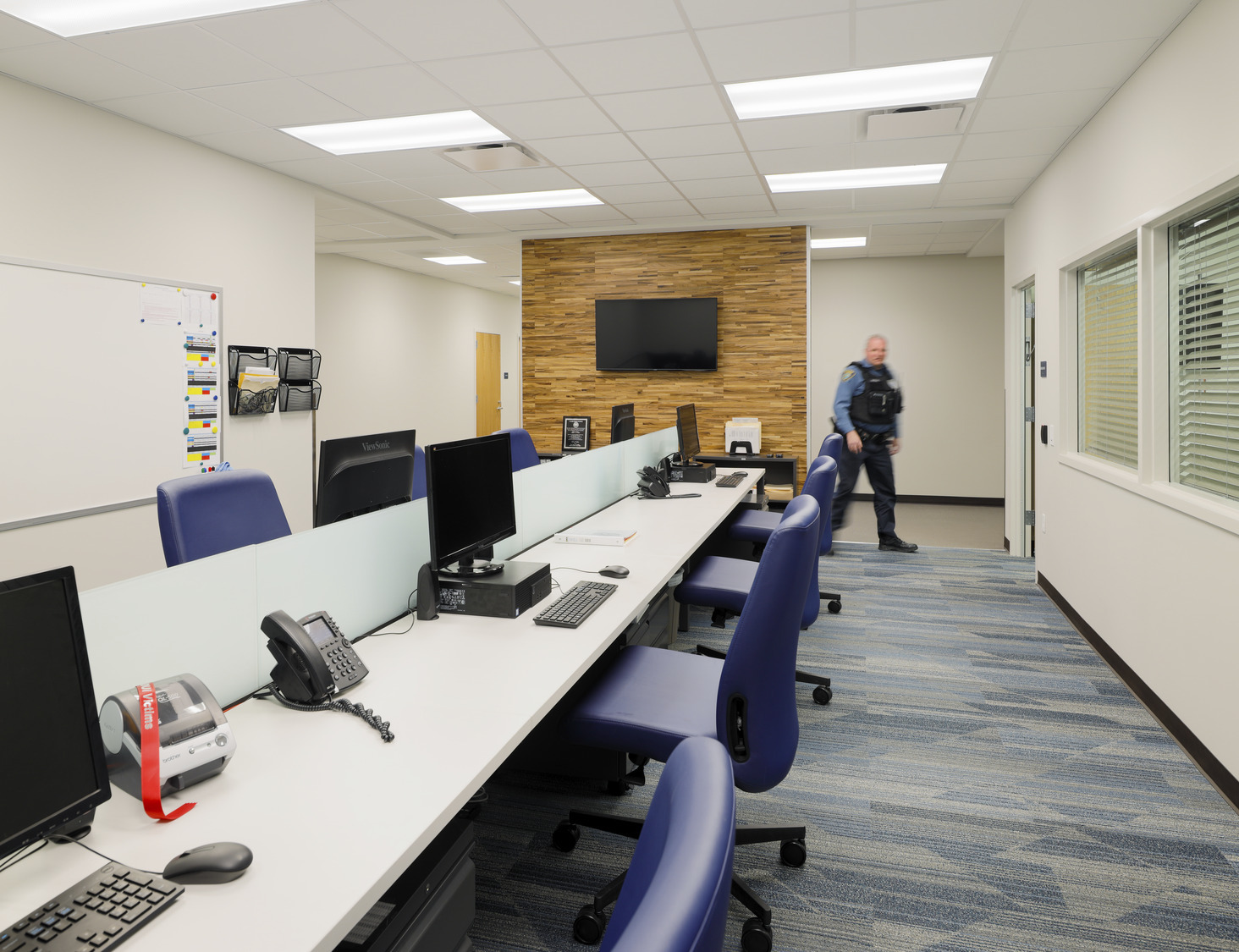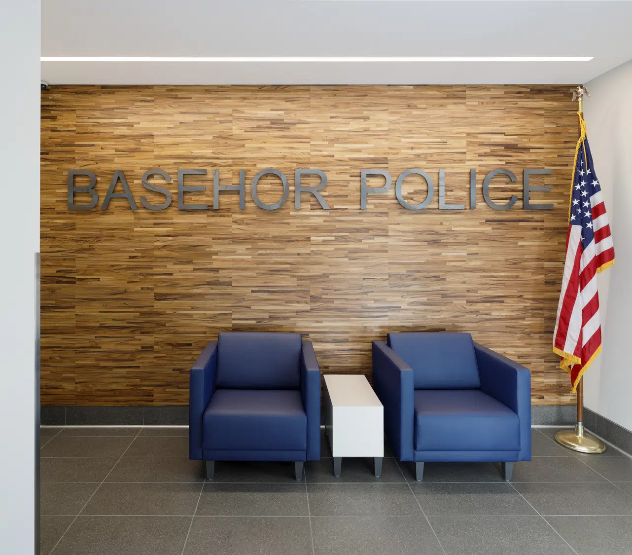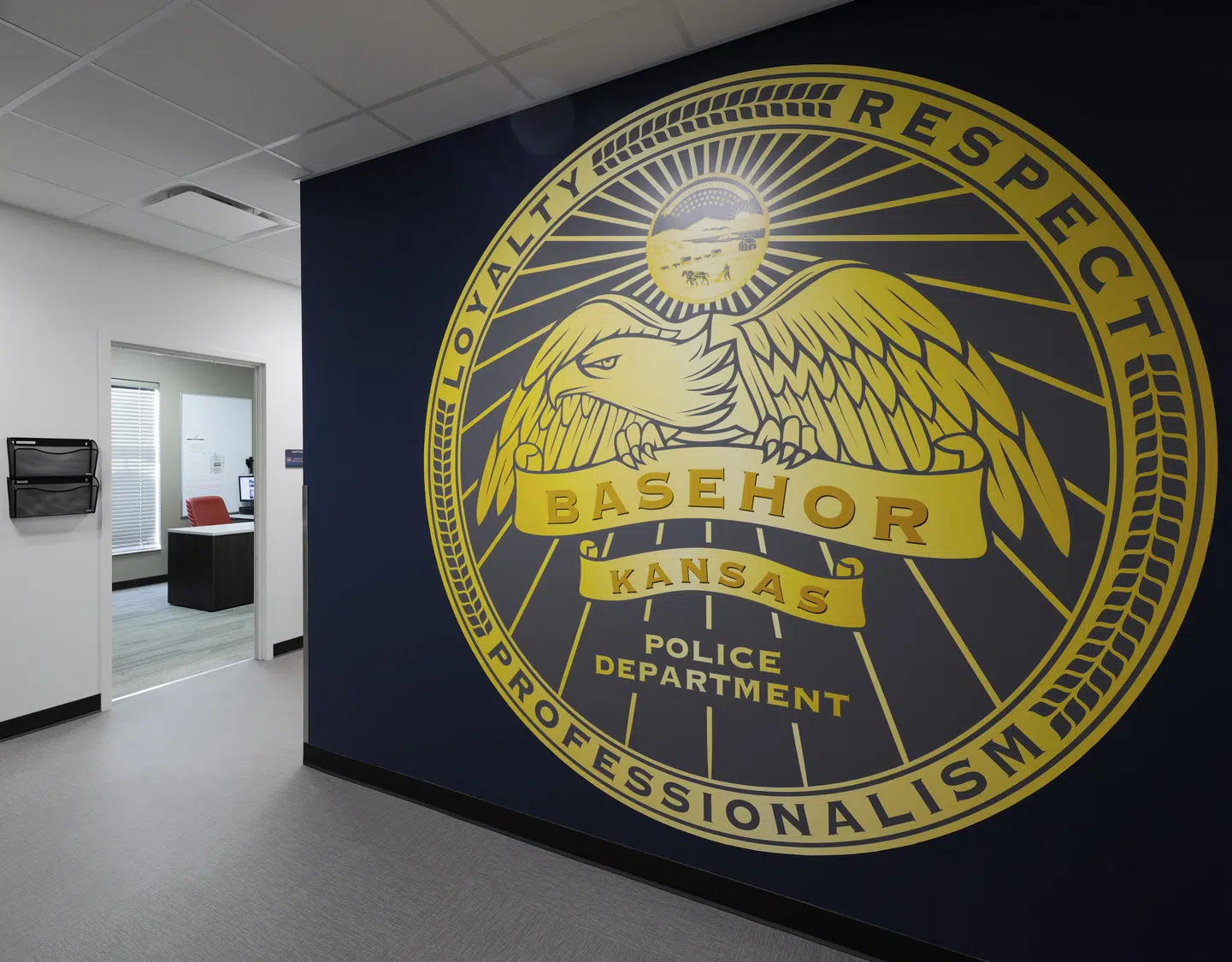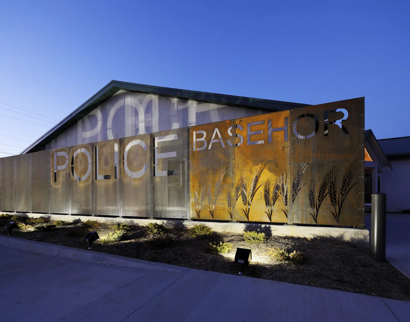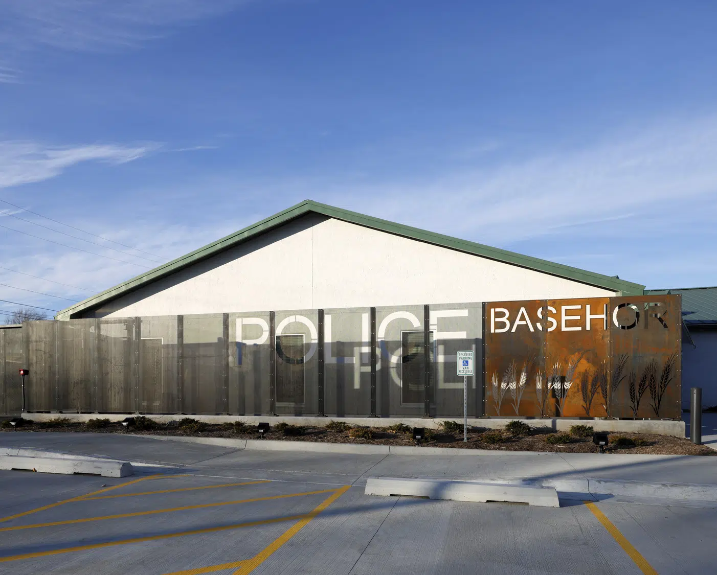 The city subsequently purchased an existing 5,200 square foot office building to be utilized by the department. The city also purchased one acre of land to the west of the building for which SFS provided a master plan concept anticipating department growth, future firing range, and potential co-location of city council and municipal courts functions. SFS assisted the city with program confirmation and provided full architecture, engineering and construction administration services to transform the existing building into the Basehor Police Station. The new station includes a training room, interview rooms, evidence storage and processing that meets proper chain of custody requirements and CALEA standards. Associated site work included new drives and covered parking for patrol vehicles to accommodate 20 sworn officers, civilian staff and marked department vehicles.