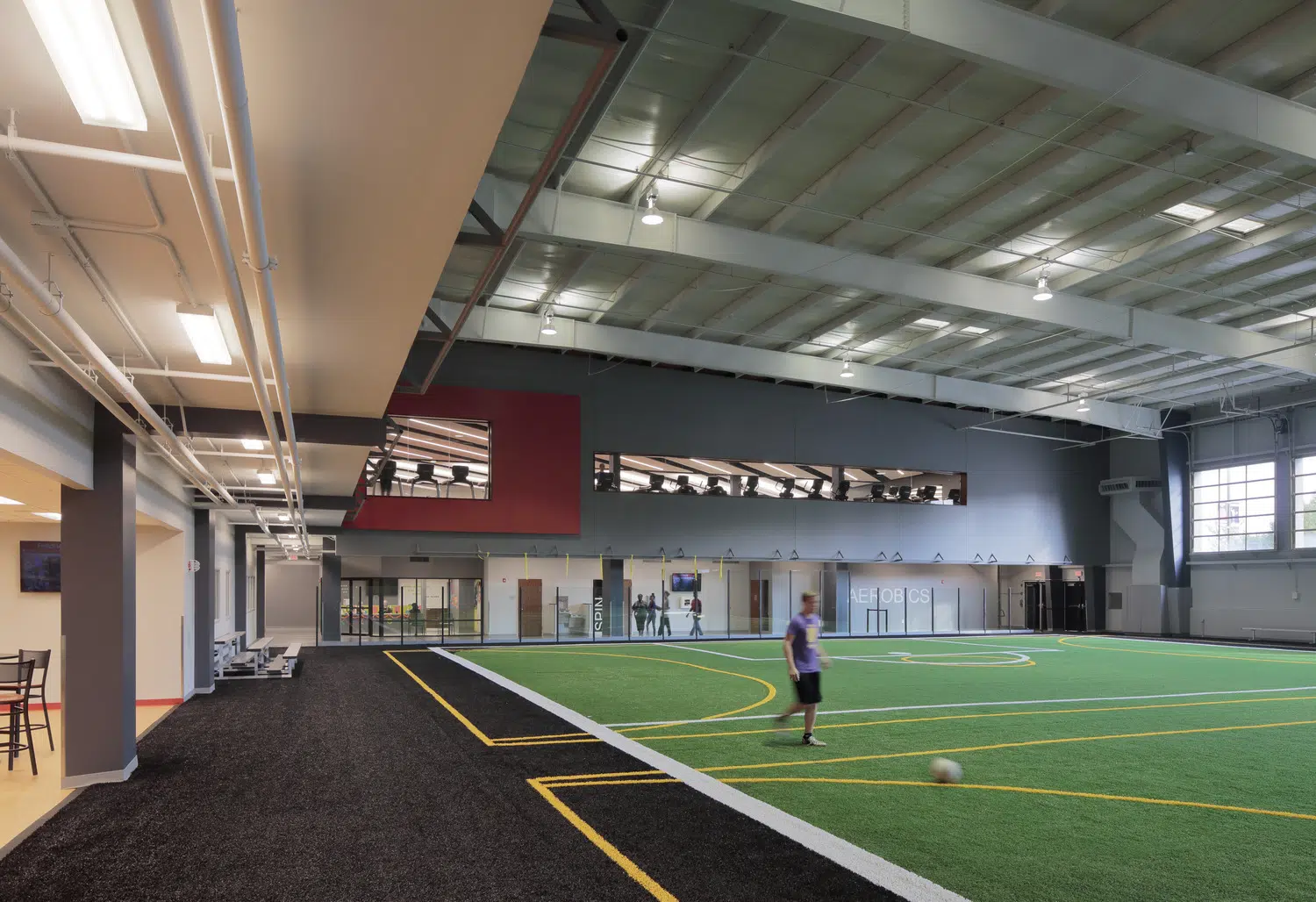 Based upon the results of a feasibility study conducted by a team lead by SFS, the City of Blue Springs, Missouri determined that purchasing and renovating an existing 76,000 square foot recreational space was the most economical way to provide much needed recreational amenities to the community. Features include multi-activity courts, an artificial turf soccer field, two walking tracks, spinning and aerobics space, fitness center, locker rooms and concessions. Additional amenities include a meeting room, indoor play area, child watch area, party rooms and recreation department offices.