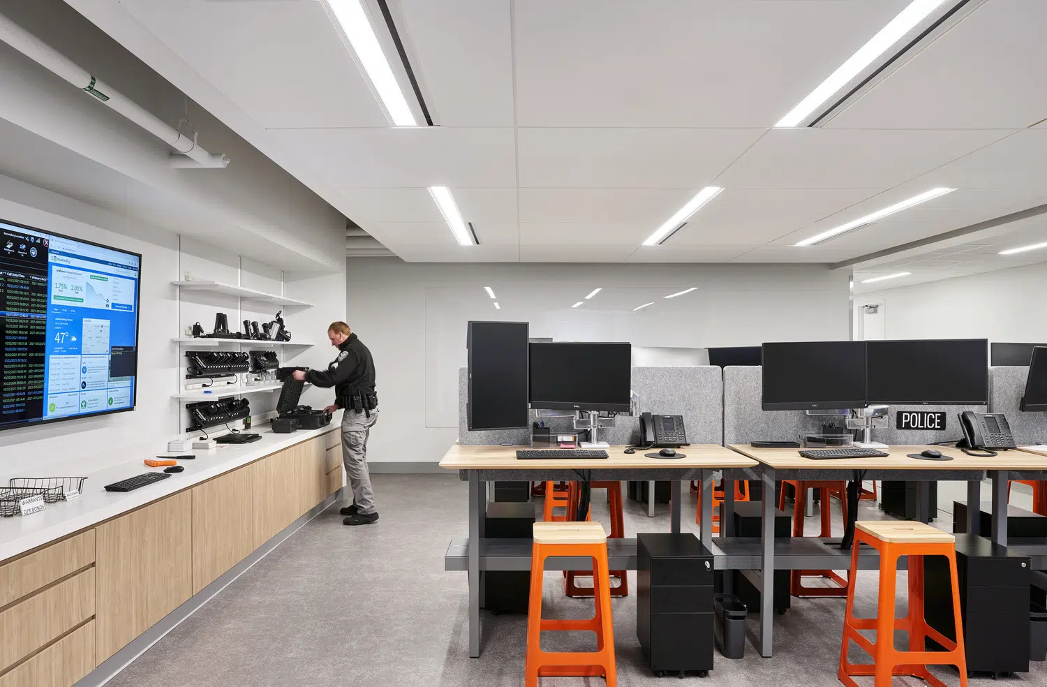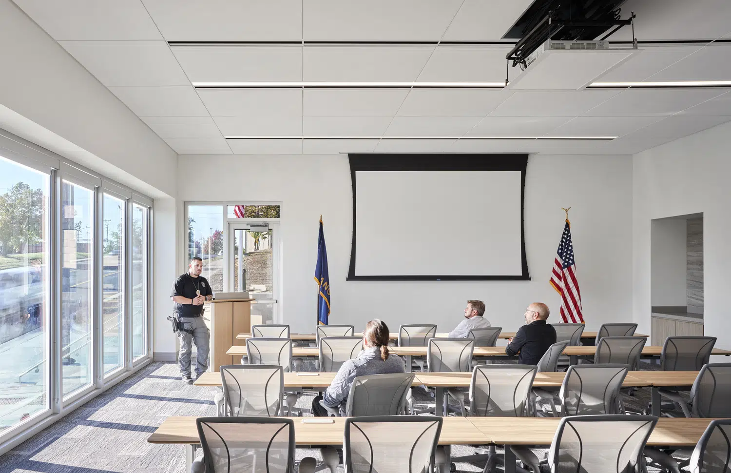 The new 13,800 square foot police station, adjacent to the historic building, includes two levels. The upper level is the administrative level and includes the public lobby, training room, interview rooms and administrative offices. The lower level is the operations level and includes a processing/intox room, bonding, armory/weapons storage, evidence processing and storage, locker rooms and squad rooms. The facility also includes a sally port for detainee transport and to accommodate the city’s animal control vehicle and an ambulance unit. The mission critical nature of this public safety facility required the building to be designed to meet IBC Category 4 for essential structures.