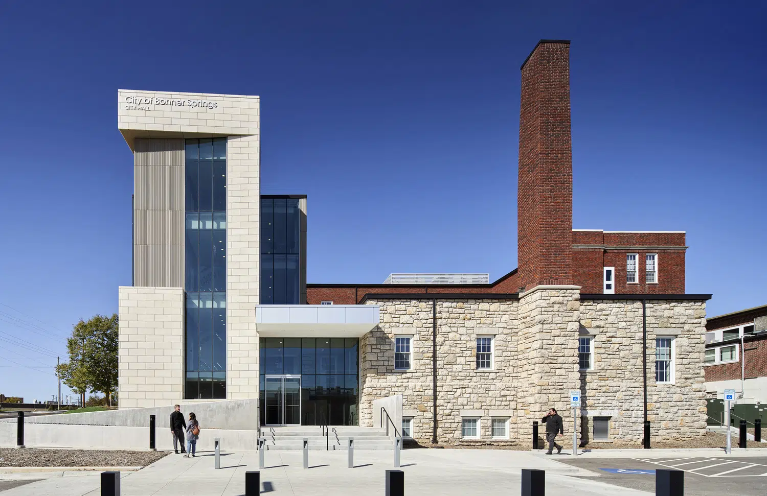SFS Architecture was tasked with uniting the operational services of the City of Bonner Springs, Kansas into one complex. To do so, our team transformed a 1918 school building listed on both the Register of Historic Kansas Places and the National Register of Historic Places into a city hall and constructed a new police facility adjacent to the historic building.