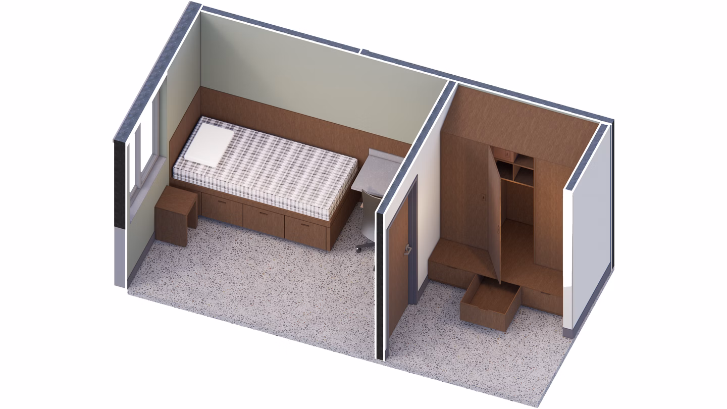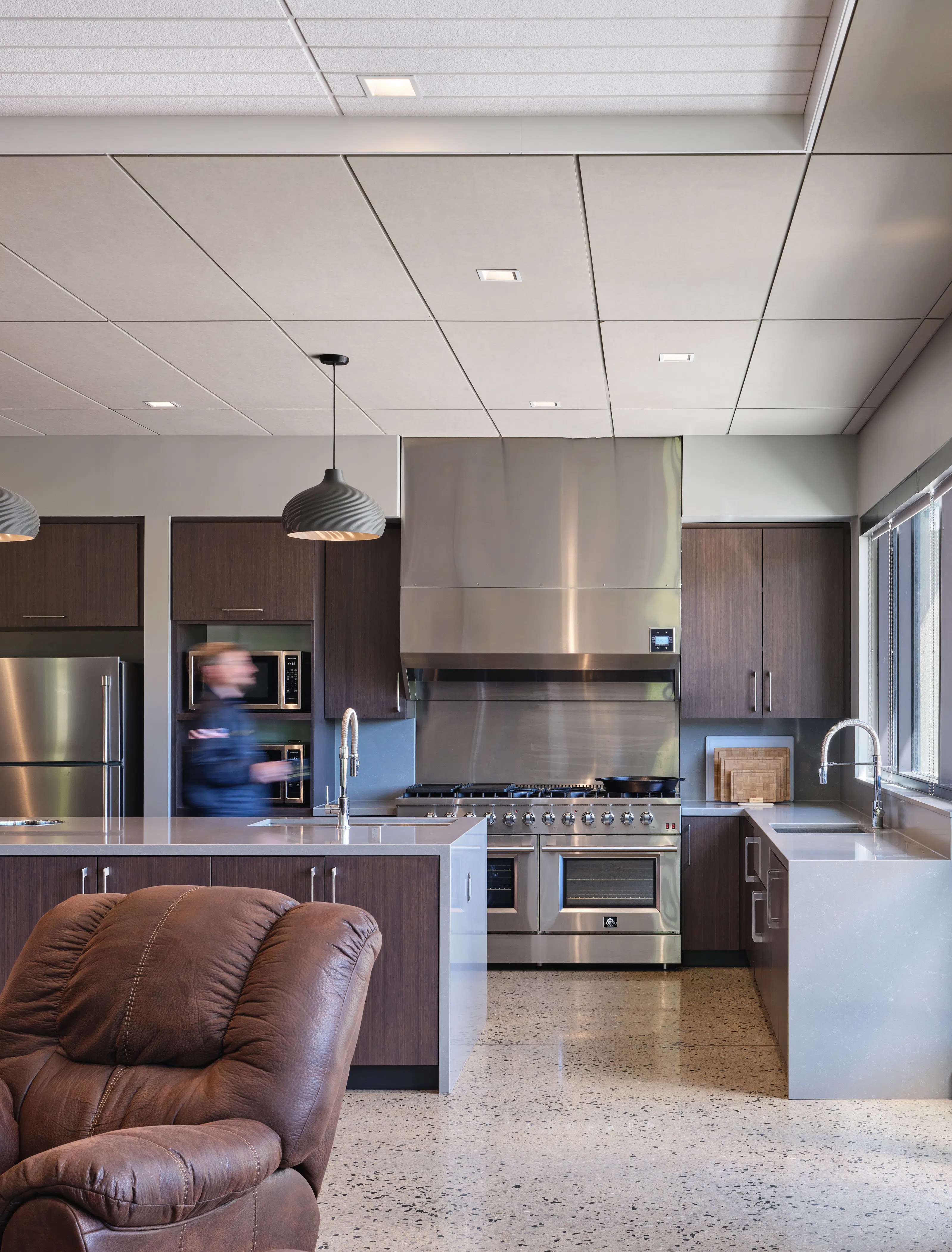 SFS designed the living quarters to promote mental health and well-being. Communal dining and gathering spaces encourage fellowship, socialization, and education, while privacy, reflection, and sleep equity are emphasized in the inclusive restrooms, individual sleeping quarters, direct-access shift lockers, and separate Captain’s suite.