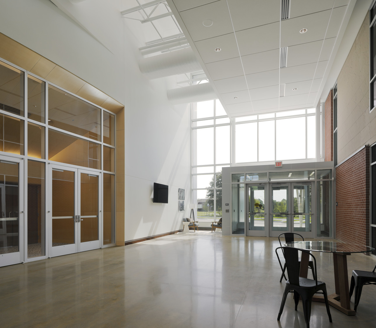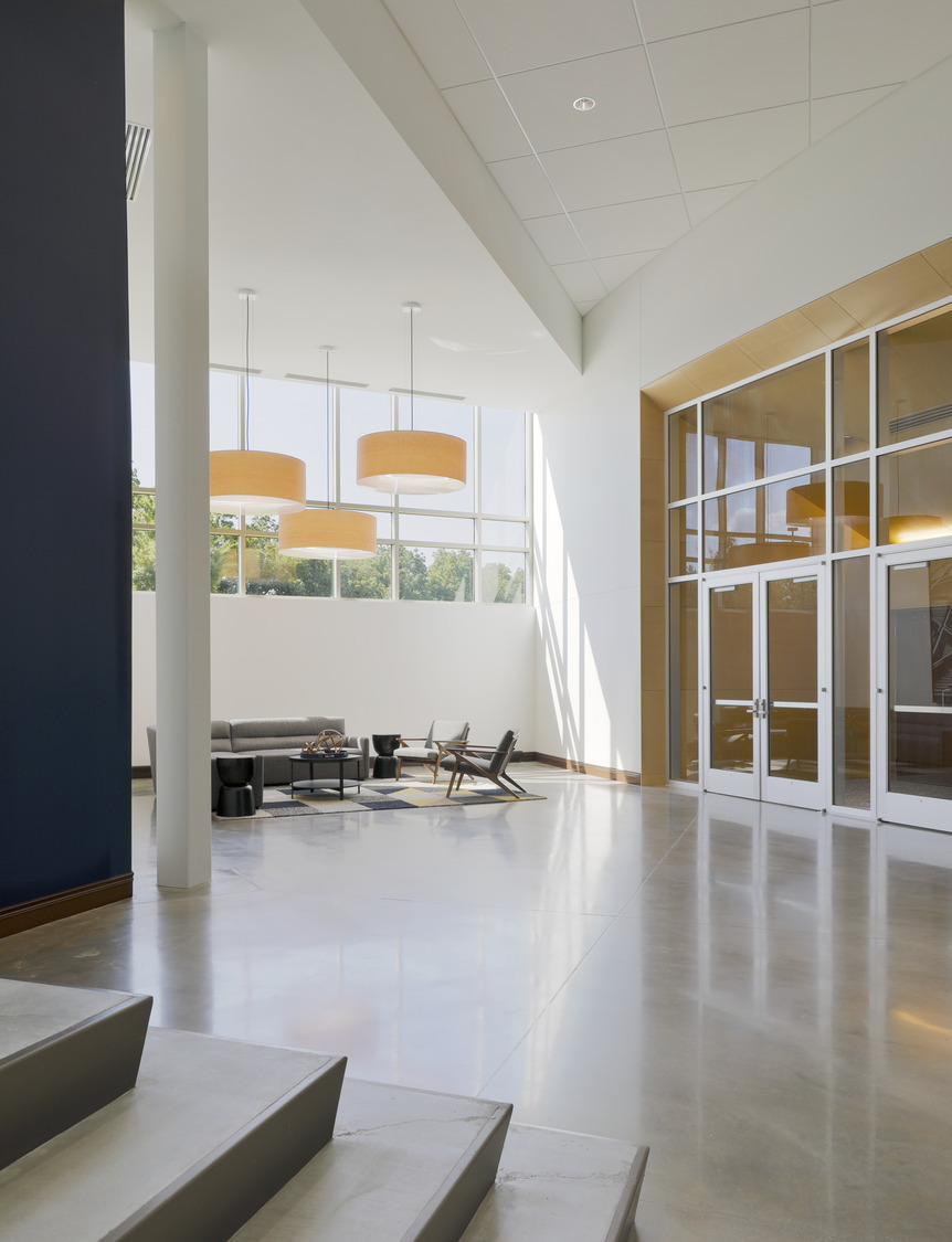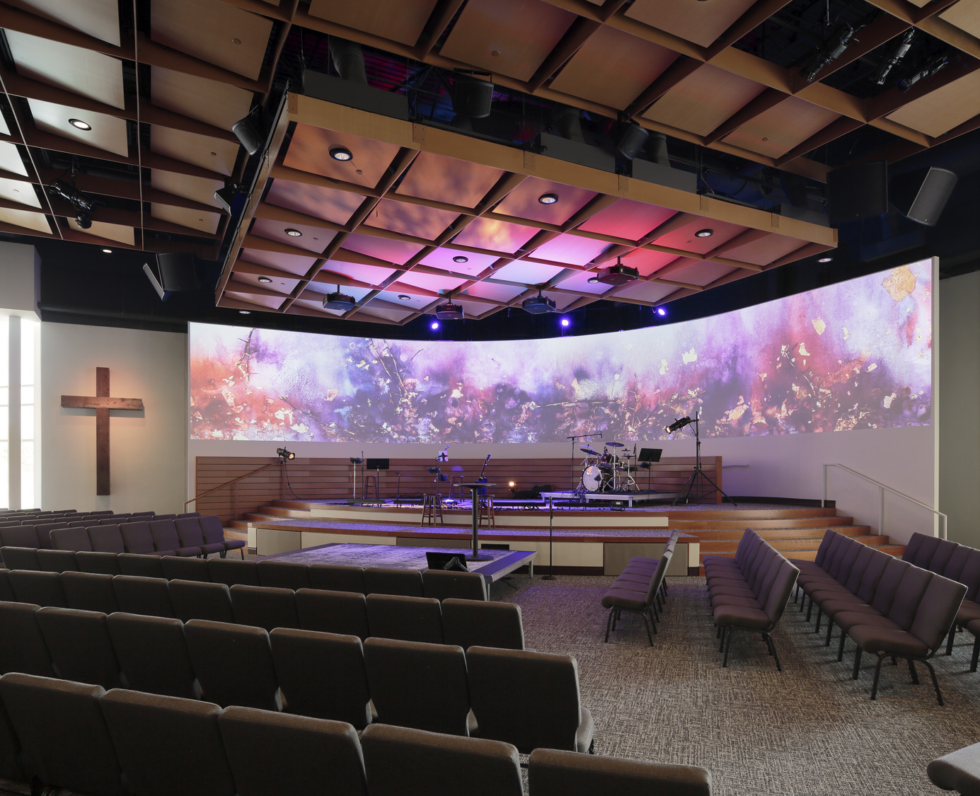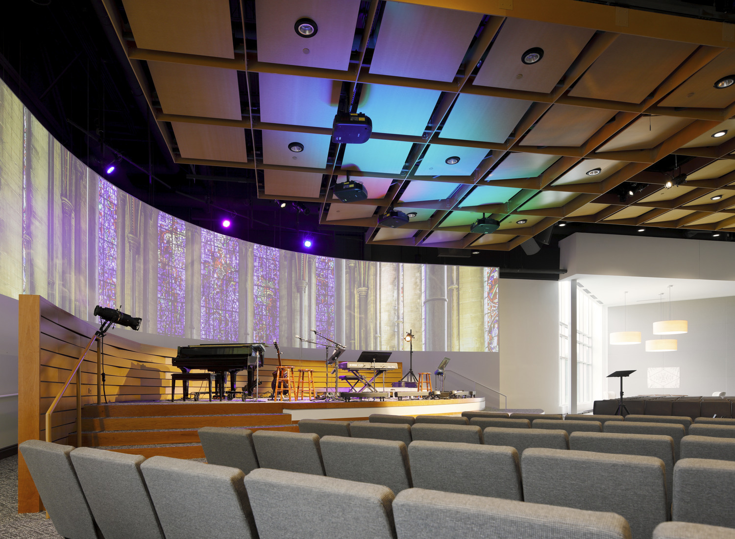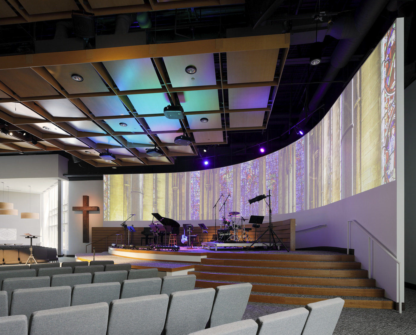 The gathering space is anchored by a coffee bar that serves as the social hub of the congregation. Break-out spaces are scaled to suit small meeting groups and maintain a “small church” feel. Both worship and gathering areas provide flexible spaces throughout week.