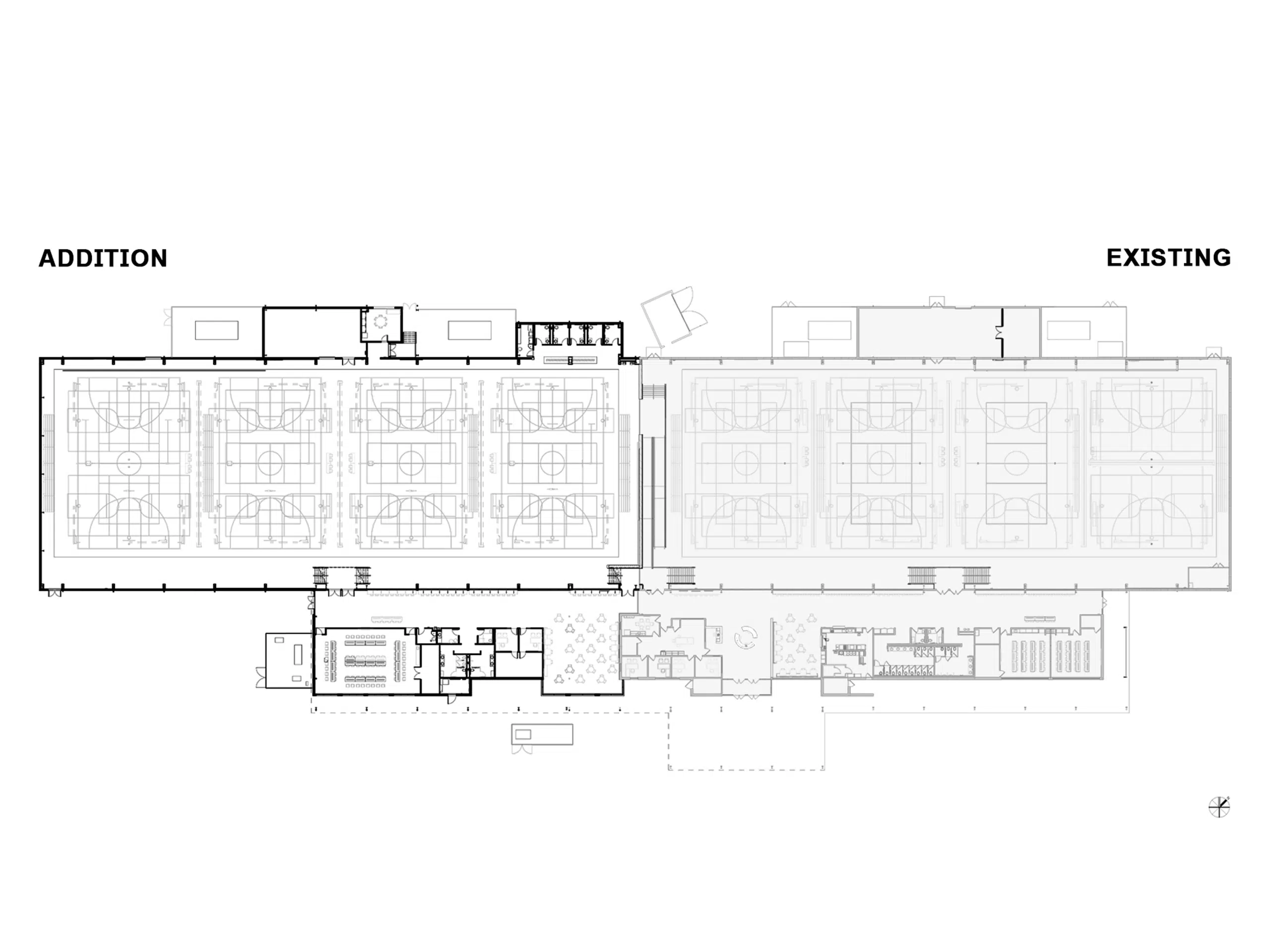 Phases two and three are master planned to include expansions to accommodate a total of eight basketball courts, four indoor tennis courts, and an indoor soccer field. The expansions are anticipated to connect to phase one via a designated hallway, allowing future building(s) to be connected to the existing facility at one control point. Additional amenities will include outdoor athletic fields, shelters and associated parking.
