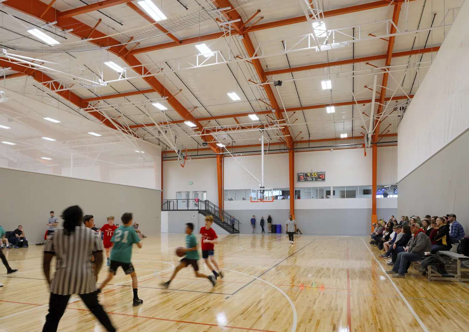 SFS Architecture collaborated with the City of Columbia, Missouri to design a new 46,000 square foot fieldhouse at the northern edge of A. Perry Philips Park. The new fieldhouse, phase one of a master plan also developed by SFS, features four athletic courts designed to accommodate basketball, volleyball, pickleball and other indoor sports throughout the year, two multipurpose rooms, concessions, restrooms, administration office suites, and associated storage and mechanical spaces.