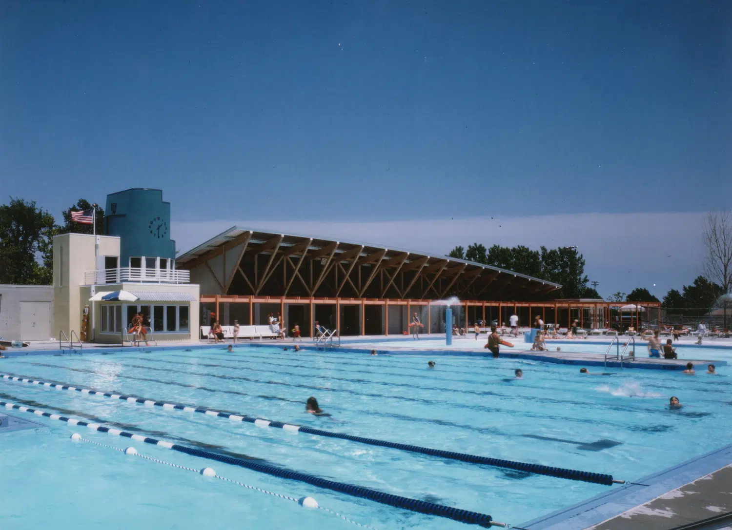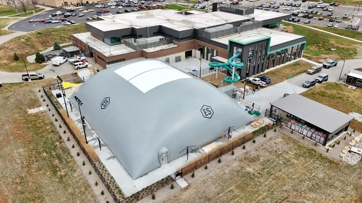 Phase 2, completed in the summer of 2023, is an outdoor aquatic center adjacent to the existing community center that shares shower and locker facilities with the indoor aquatic center. The outdoor aquatic center includes an 8x25 yard competition pool, 1-meter diving tower and spray ground. Additional amenities include a climbing wall, inflatable water products and ample deck space. An air-supported dome structure allows for year-round use.