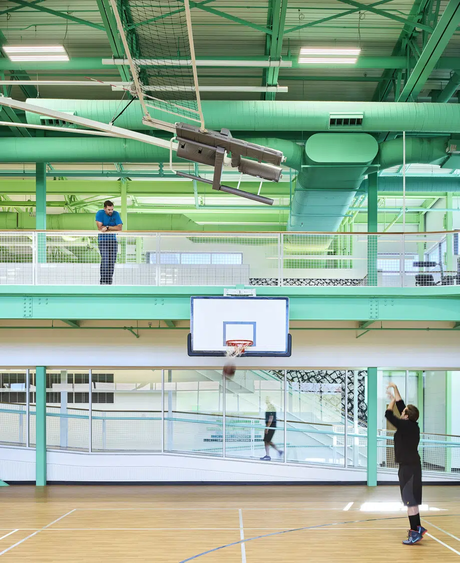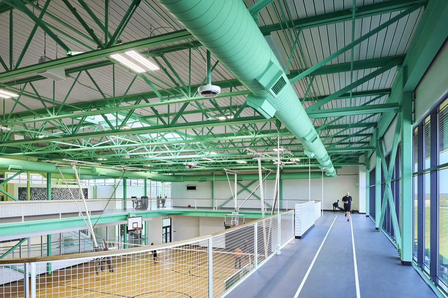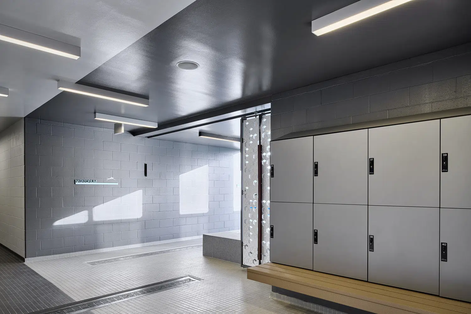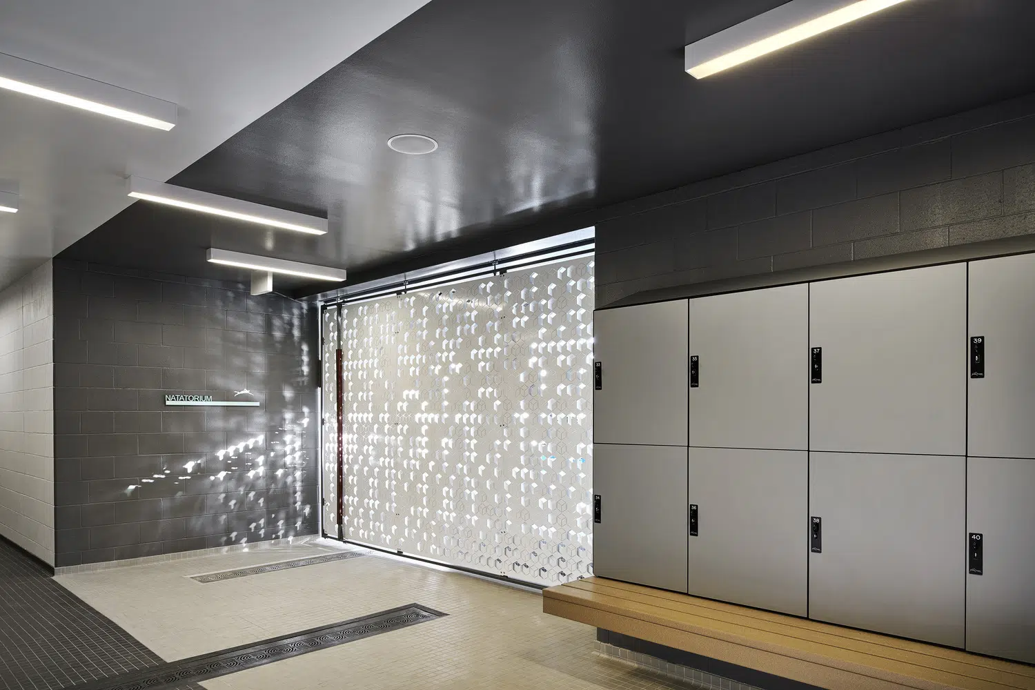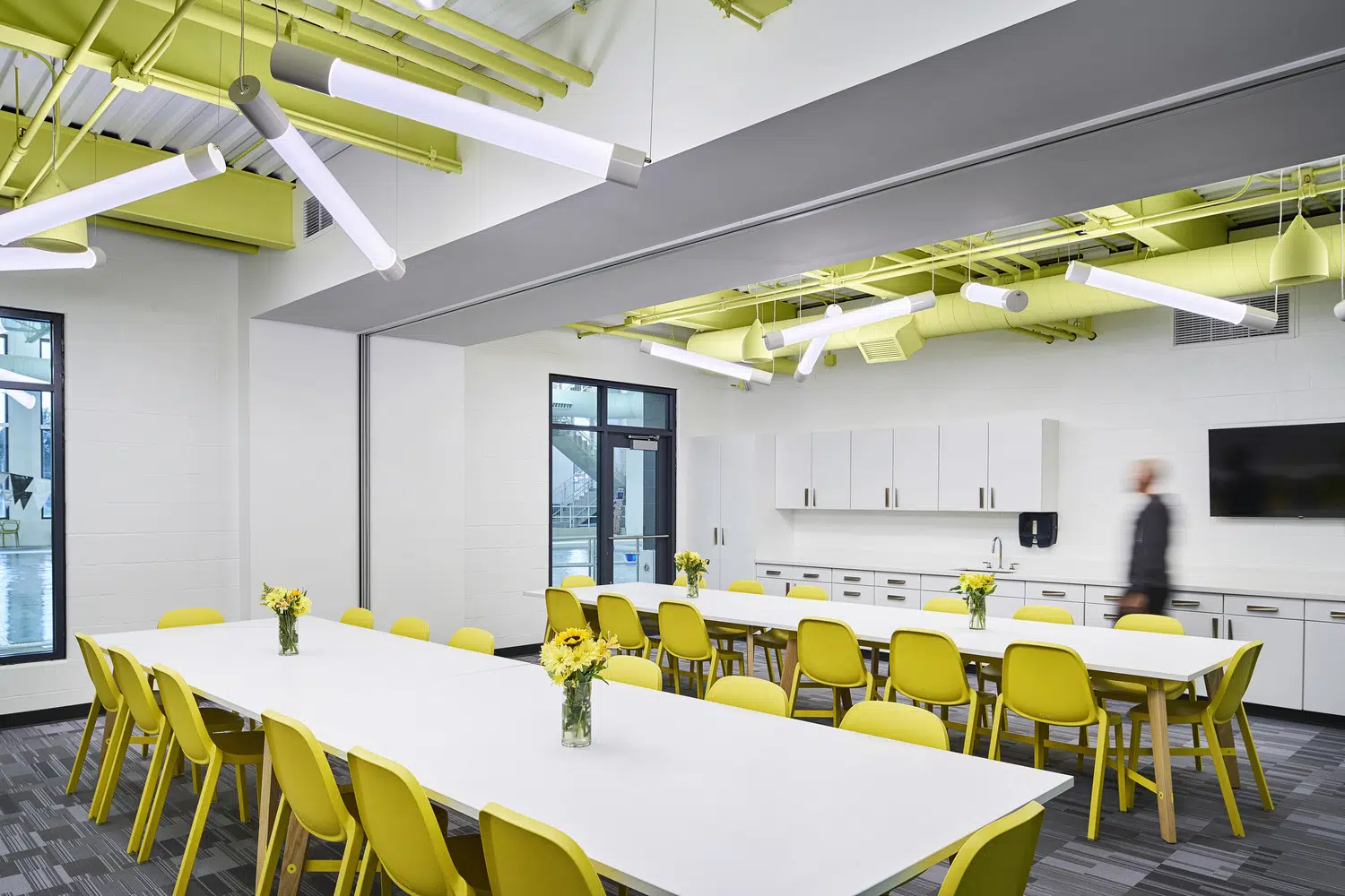 The project required close coordination of mechanical, electrical, plumbing and fire systems with open ceiling architectural concepts to complement the overall concept of the building. Systems provided include high-efficiency mechanical systems with energy recovery, ventilation control and integrated digital controls system. The heating, venting and cooling system for the natatorium satisfies required space temperature while recovering heat from compressors to maintain pool water temperature, humidity-control, uniform air distribution and condensation control in highly corrosive environments. The electrical system includes lighting controls and special direct and indirect lighting in the fitness areas and natatorium.