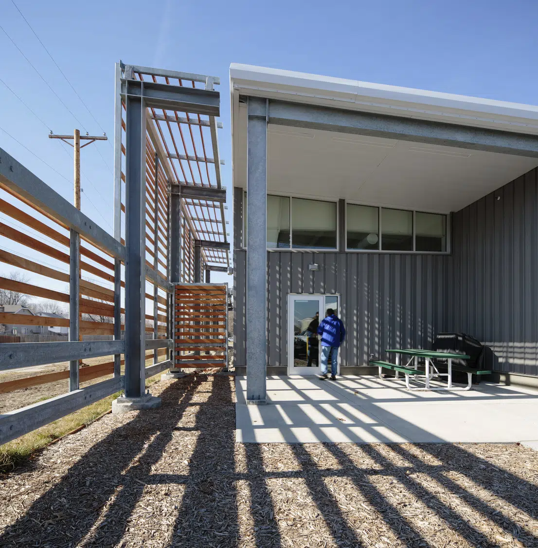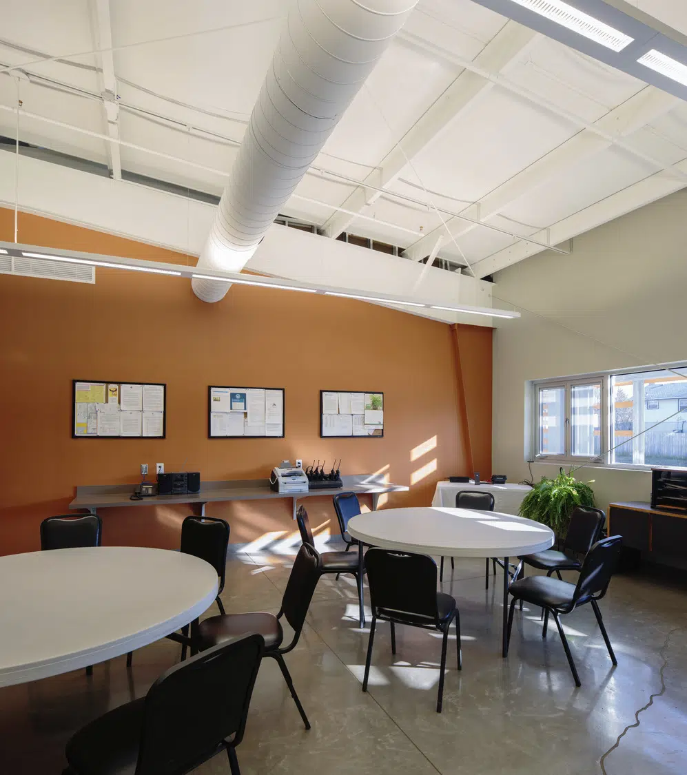 The new administration building includes offices, crew rooms, meeting and file storage rooms, as well as a locker room and lunchroom facility. While each department’s offices and crew workrooms are clustered together, there is a physical separation between department areas so each can maintain a sense of identity. Wherever possible, shared use features were provided, including locker room, lunchroom, meeting and mudrooms to eliminate duplicated spaces.