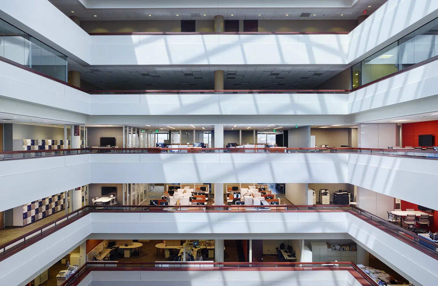 In 2013, the General Services Administration (GSA) launched the Total Workplace initiative to create a 21st-century workplace throughout the Federal Government. The initiative aimed at providing resources and expertise to help federal agencies reduce office space, foster collaboration, better manage IT spending, and increase energy efficiency. Since the launch of that initiative, SFS Architecture has collaborated with GSA and customer agencies throughout the United States to create high-performance workplaces that enable Federal agencies to execute their mission efficiently, sustainably and collaboratively.