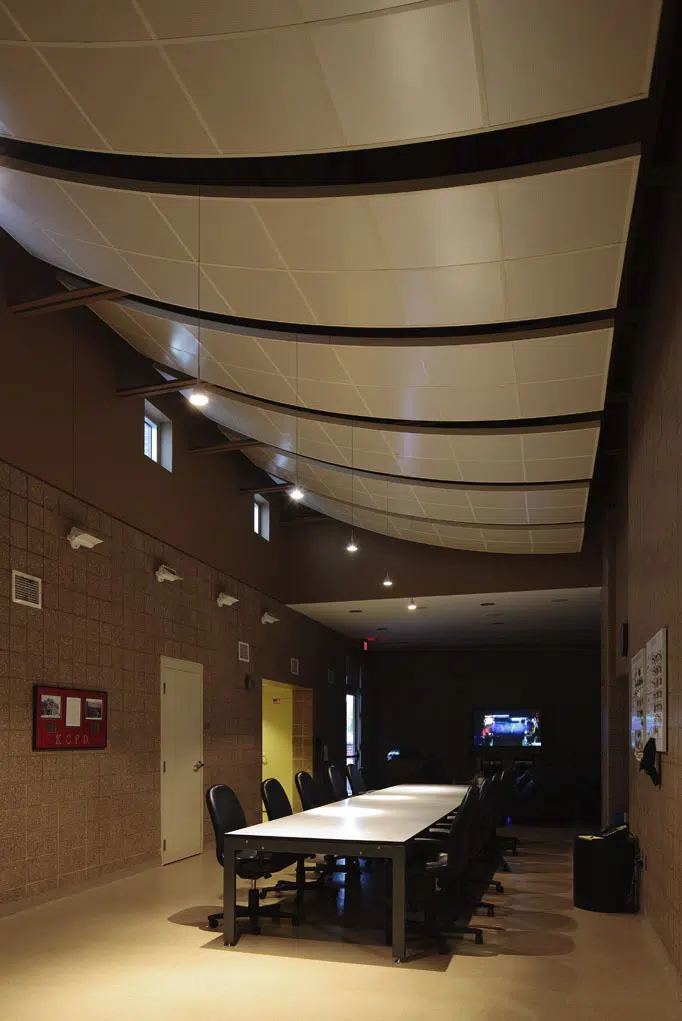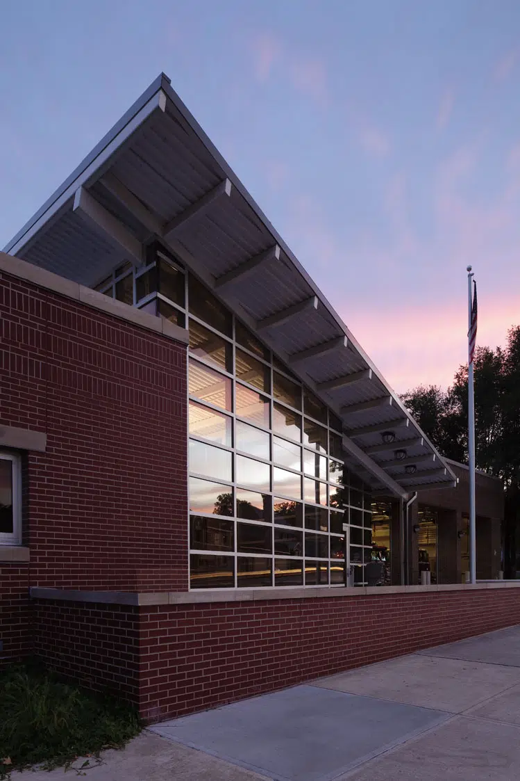 Interventions include eight individual sleeping cubicles and four individual showers and restrooms to provide separation and privacy for firefighters. As a Battalion Chief Station, the facility required three bays, which allowed the existing fourth bay to be converted into living quarters for dining, dayroom and exercise. Three captains, one battalion chief office and living arrangements were also added to bring the station’s occupancy up to 12.