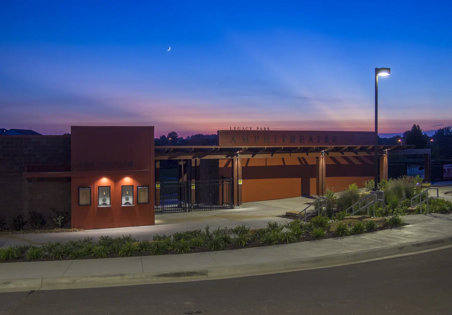 SFS provided design services for improving the existing amphitheater to support larger concerts, theatrical performances and community events at Legacy Park. Improvements enhance the outdoor performance space by adding a covered stage, backstage support facilities, box office structure, restrooms, concessions, additional seating and walkways, and expanded parking facilities.