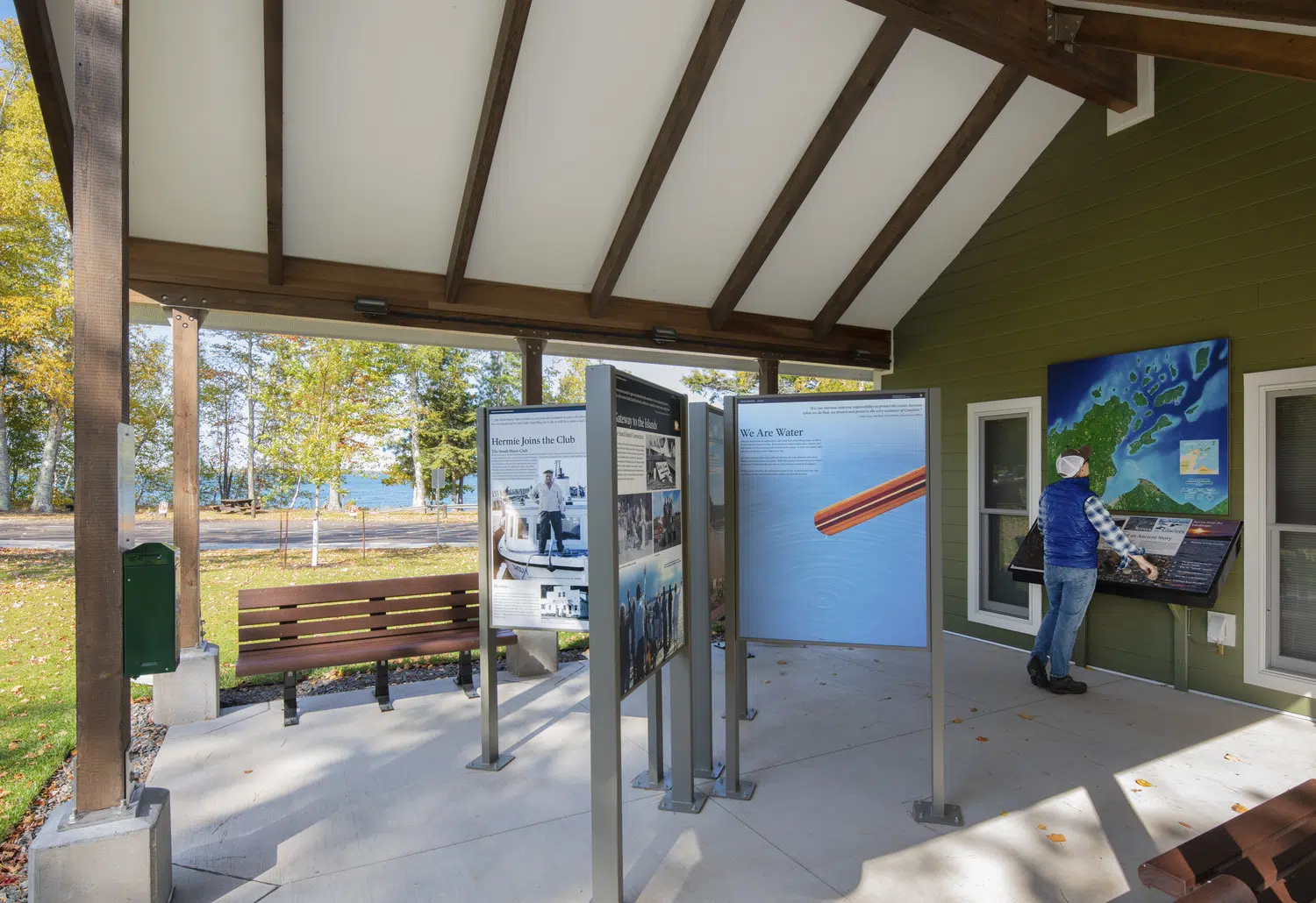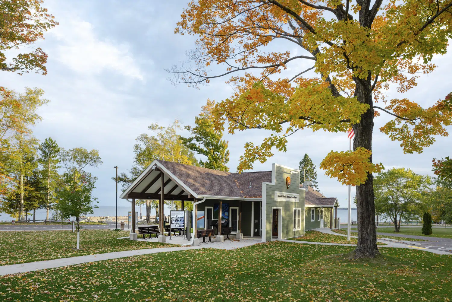 The 1,650 square foot Little Sand Bay Visitor Center at Apostle Islands National Lakeshore lightly touches the National Park's ecosystem and responds to the architectural vocabulary of its surrounding historic properties. Designed to enhance the park experience, the visitor center includes a public lobby, information desk, sales area, offices, conference and break room for park staff.