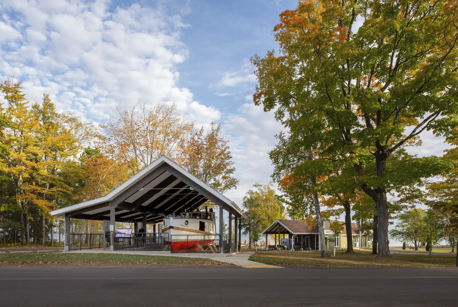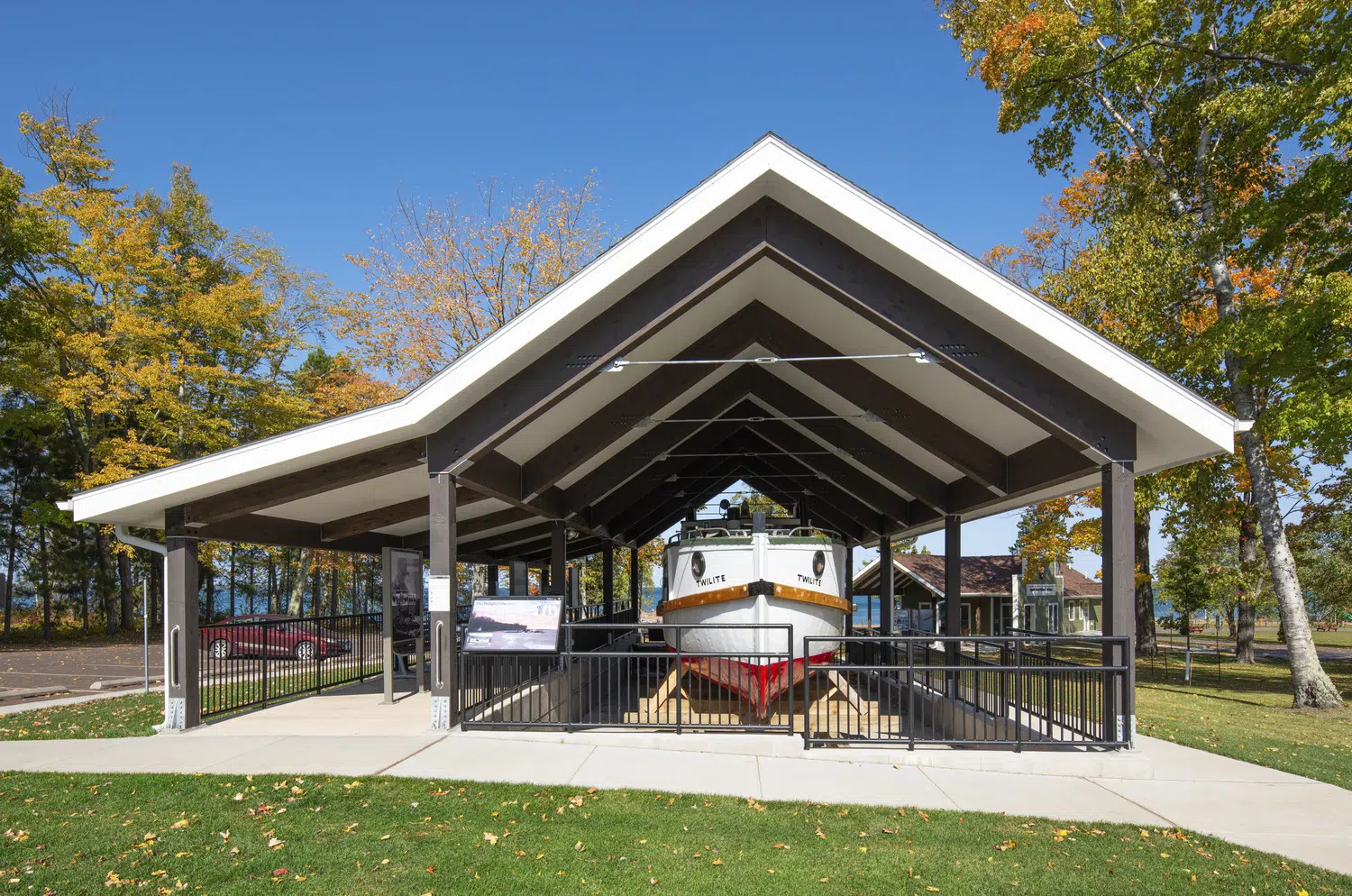 Outside, covered educational and interpretive displays are provided, and a permanent canopy and cradle was designed to protect the historic Twilite fishing tug.