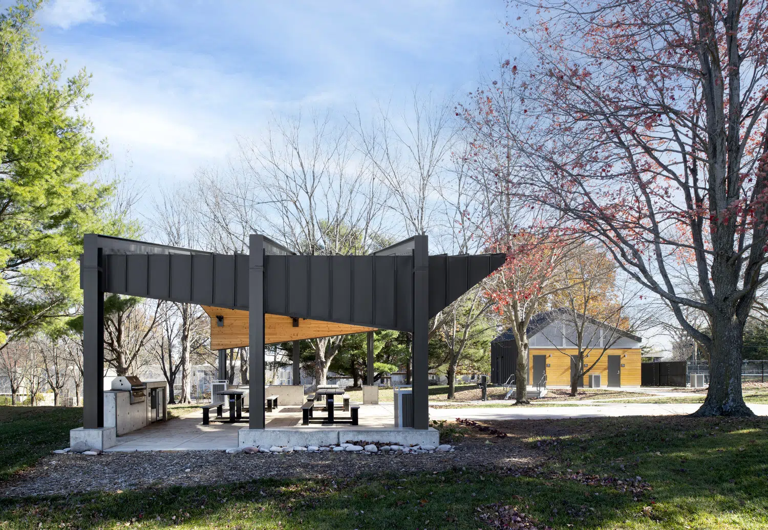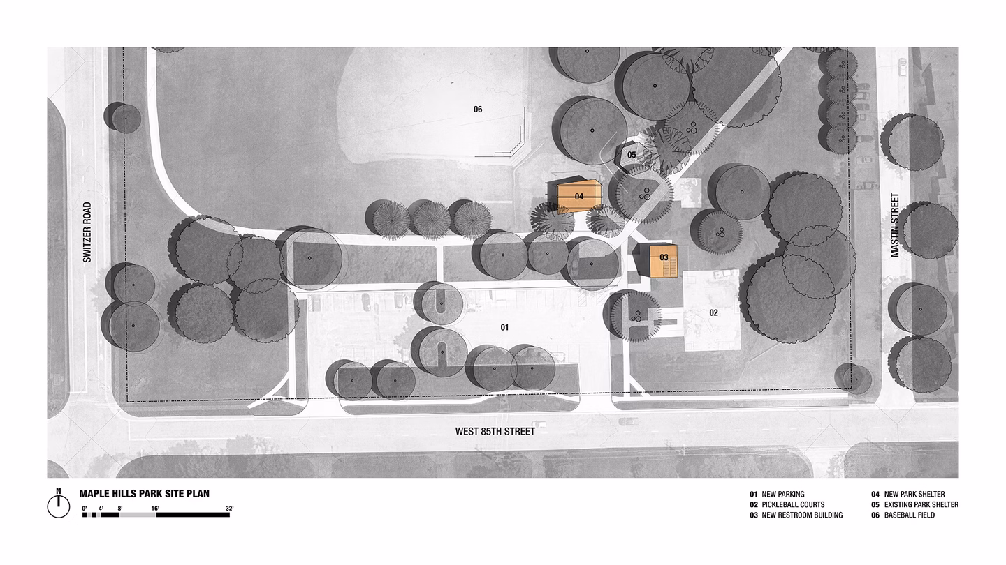 Focused on equitable community development, well-being and energy conservation, the Maple Hills Park improvement project upgraded outdated facilities with a new restroom building, park shelter and site improvements, providing enhanced functionality, security and energy efficiency while redefining the architectural character of the park.