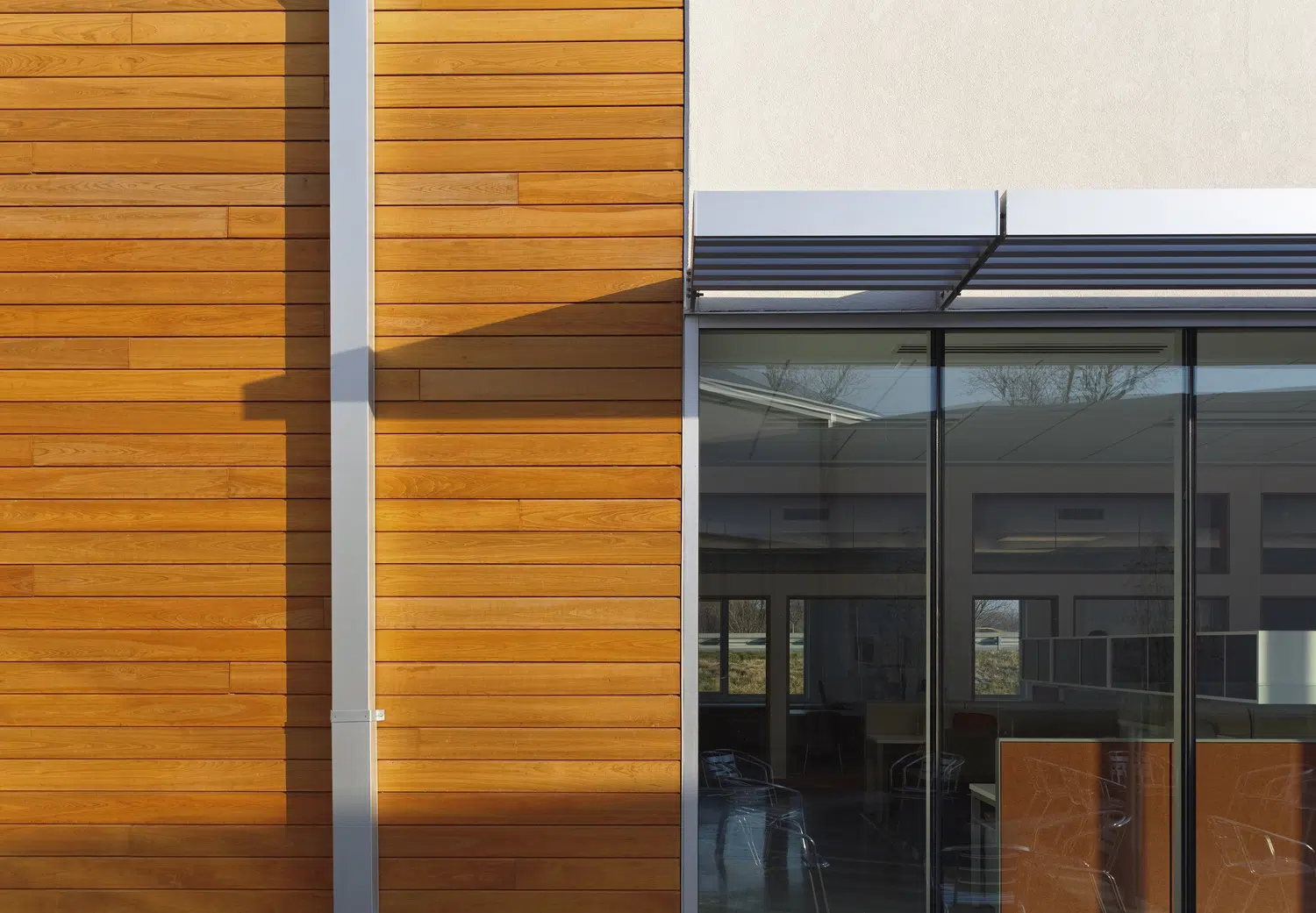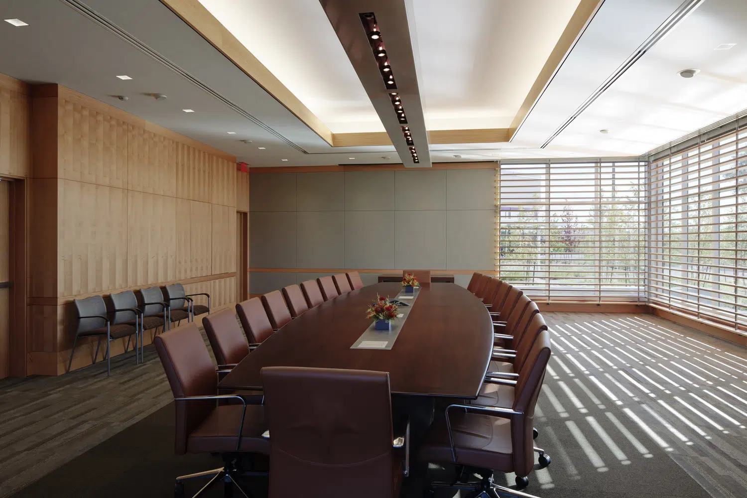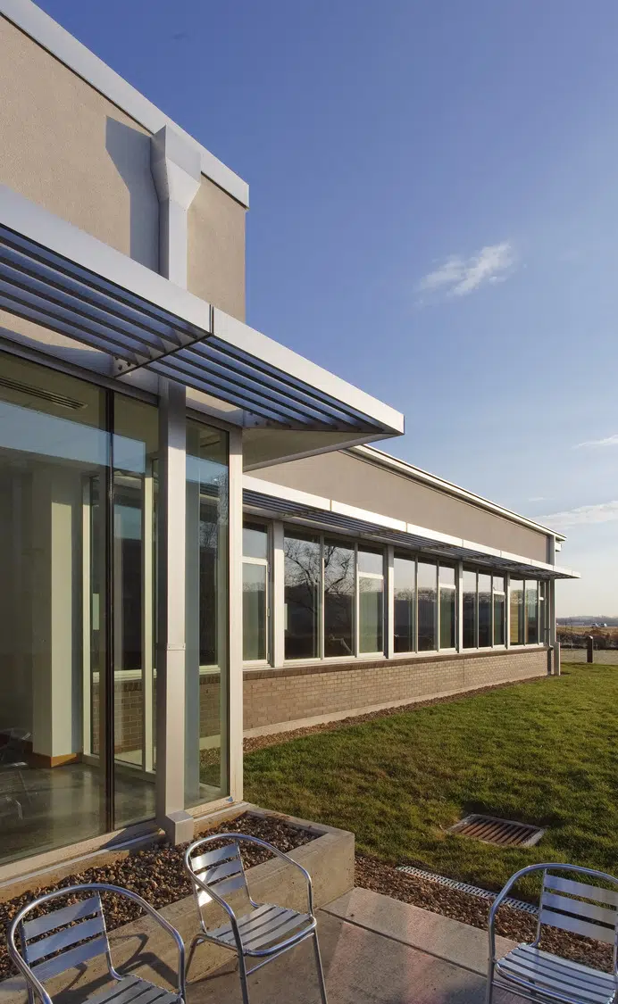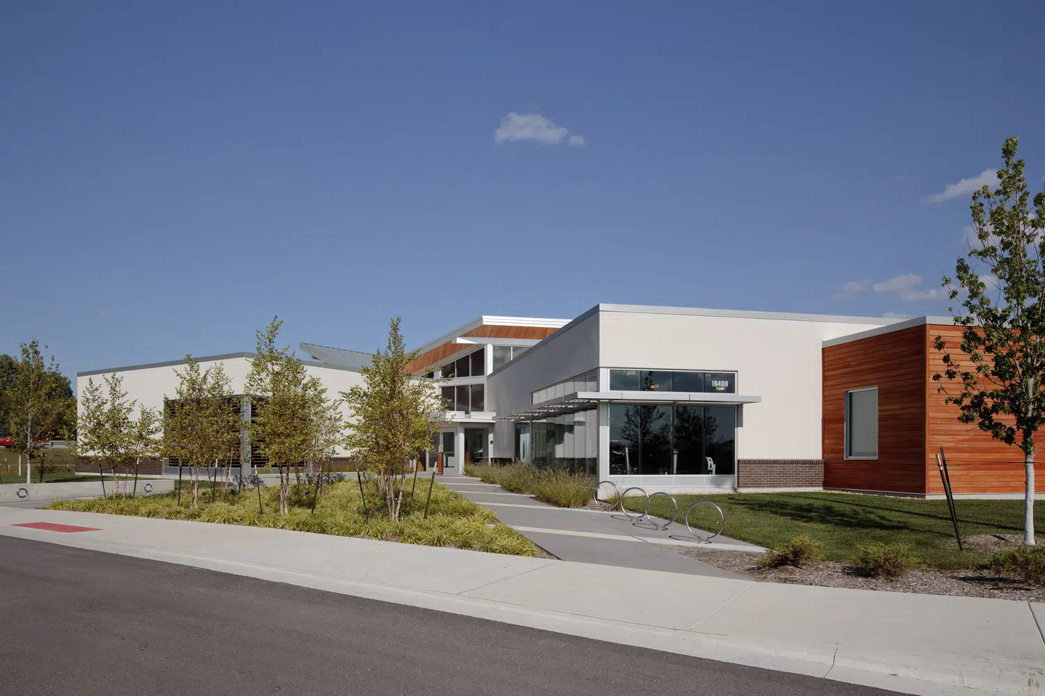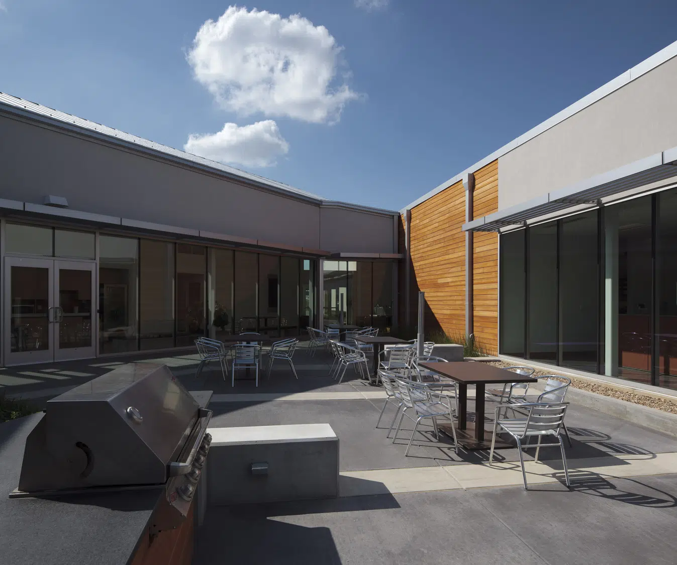 A signature office was designed to meet MPR's long-term space needs and provides a warm, inviting environment that expresses the organization's values of physical wellness, education and sustainability. The new headquarters provides warm, welcoming spaces with a practical yet elegant aesthetic that supports both collaborative and separation needs of staff and clients. The floor plan was divided into three distinctive elements, opening all spaces of the building to natural light and exterior views. A large outdoor courtyard serves as an amenity and gathering space. In addition to open and private office spaces, the facility provides a wellness center, tiered training room and conference spaces.
