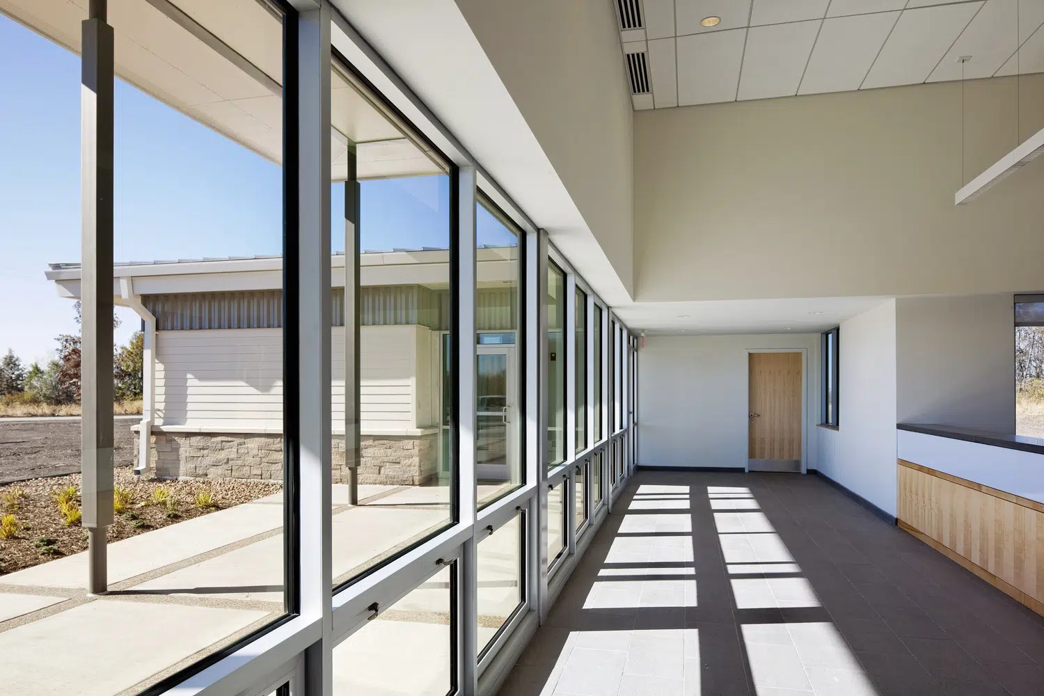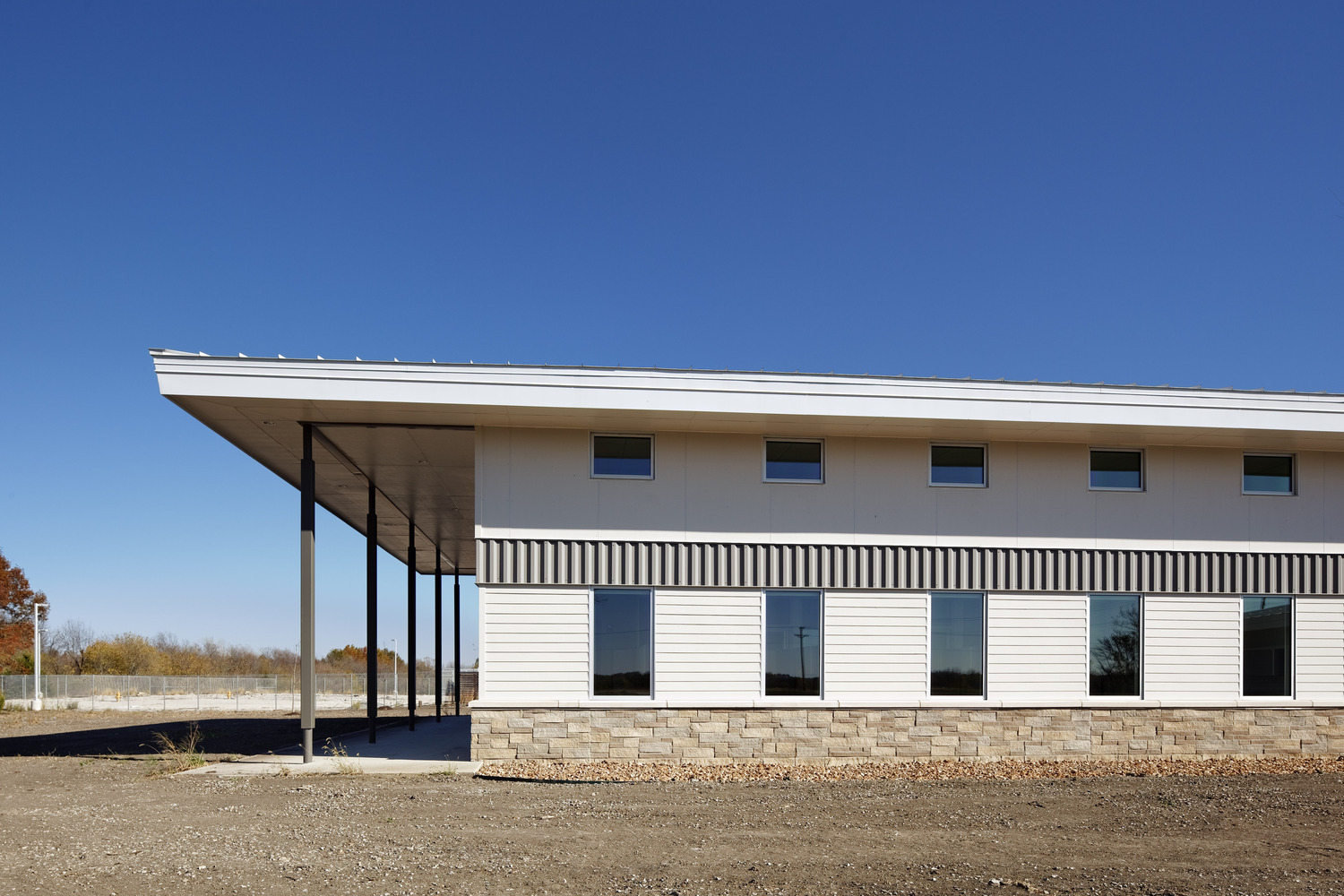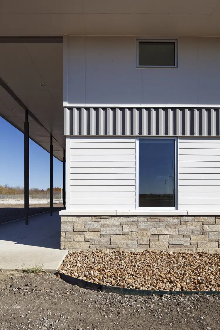 A maintenance facility is designed to meet the department’s functional needs while also integrating with the natural site. Elements include drive-through vehicle repair bays, shop area, vehicle wash, hazardous materials storage, materials storage and ten vehicle storage bays.