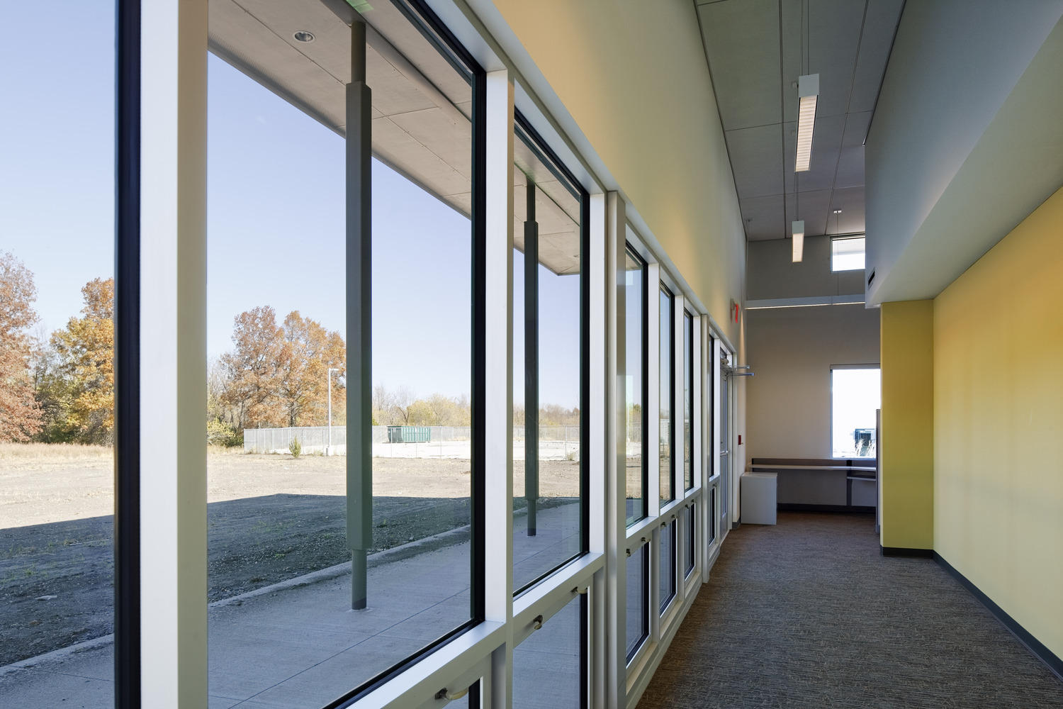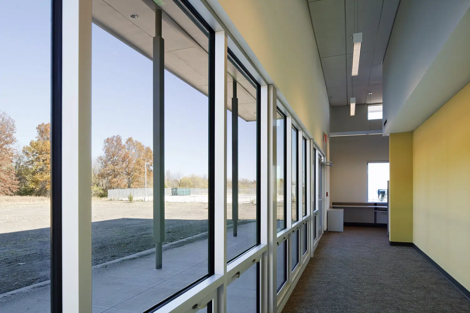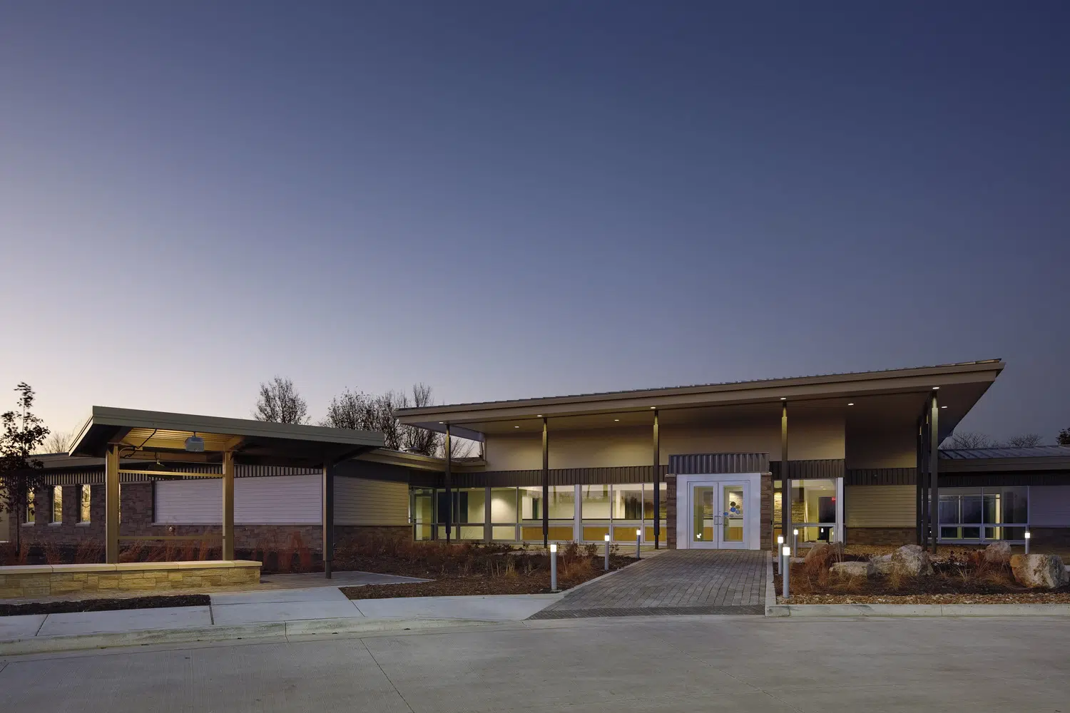 A maintenance facility is designed to meet the department’s functional needs while also integrating with the natural site. Elements include drive-through vehicle repair bays, shop area, vehicle wash, hazardous materials storage, materials storage and ten vehicle storage bays.