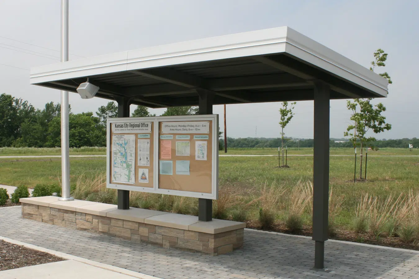 The site incorporates prairie restoration, native landscaping, pervious pavement and sedimentation control, stormwater control, minimal site disturbance and low-impact development concepts. Educational exhibits are provided to communicate news and educate the public about important conservation activities.