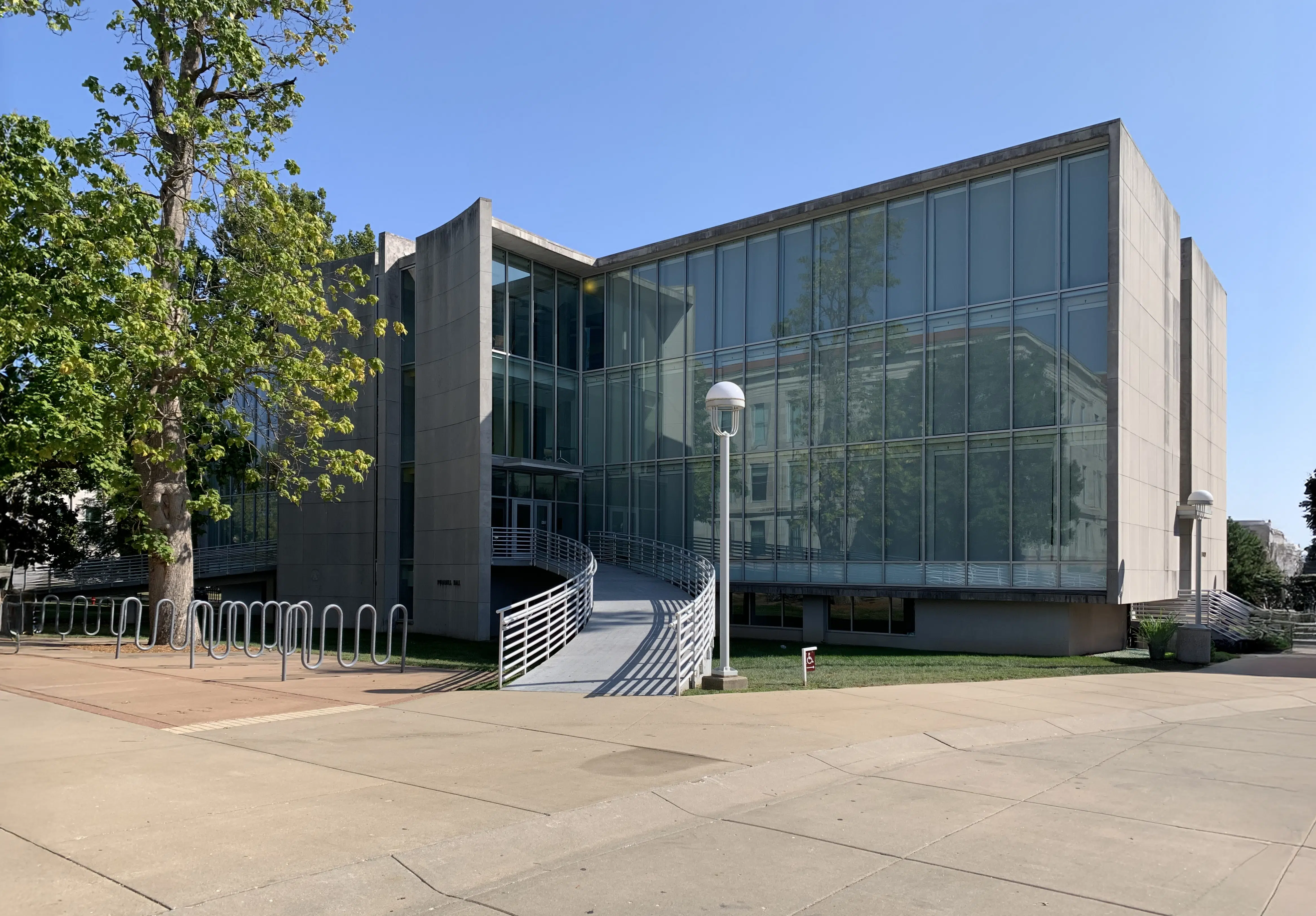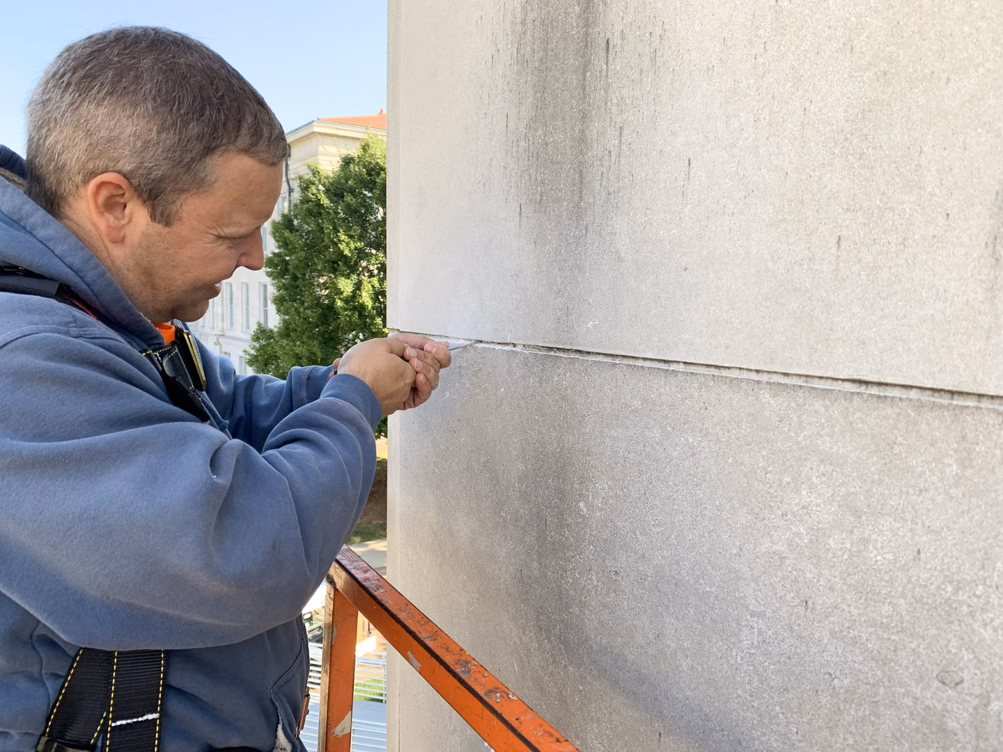 SFS conducted a hands-on assessment of each limestone veneer panel and coping stones of the building via a 65-foot lift, which resulted in a report documenting the existing masonry conditions and recommendations for preservation treatments, monitoring and maintenance with repair quantities so the owner could obtain an accurate cost opinion, as well as best practices for masonry cleaning, repointing and repair. In addition, the SFS team provided a visual assessment and recommendations for two concrete ramps and schematic design level repair details for the deep soffits over the two main entrances on the north elevation of Pummill Hall.