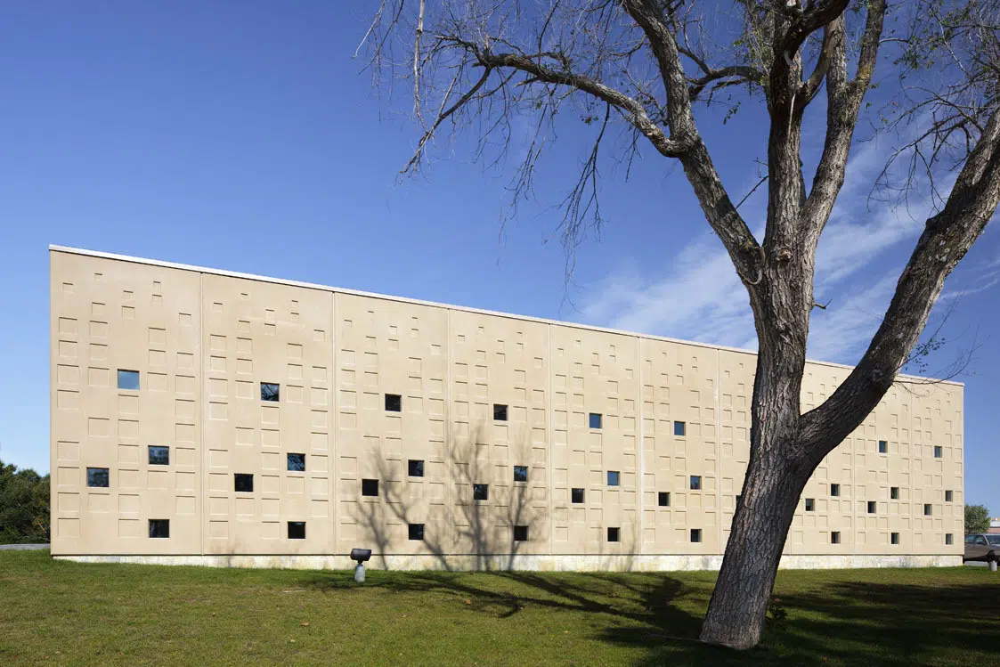 The constraints of an economical, highly durable envelope and interior challenged the team to seek out the inherent qualities of the interior aquatic environment and investigate manufacturing processes and materials that would enhance the design of this space. The design utilizes a pre-cast insulated concrete sandwich panel system and features an exercise in patterning, modulating, and repetitiveness derived from the economy of its materiality.