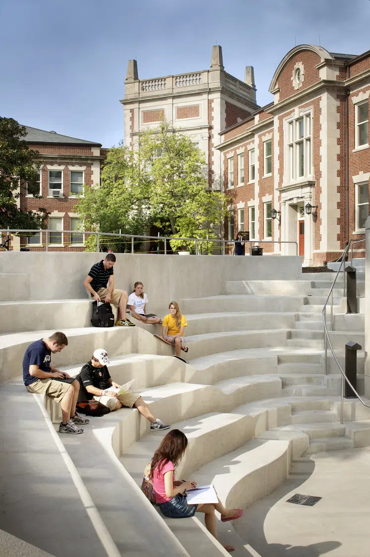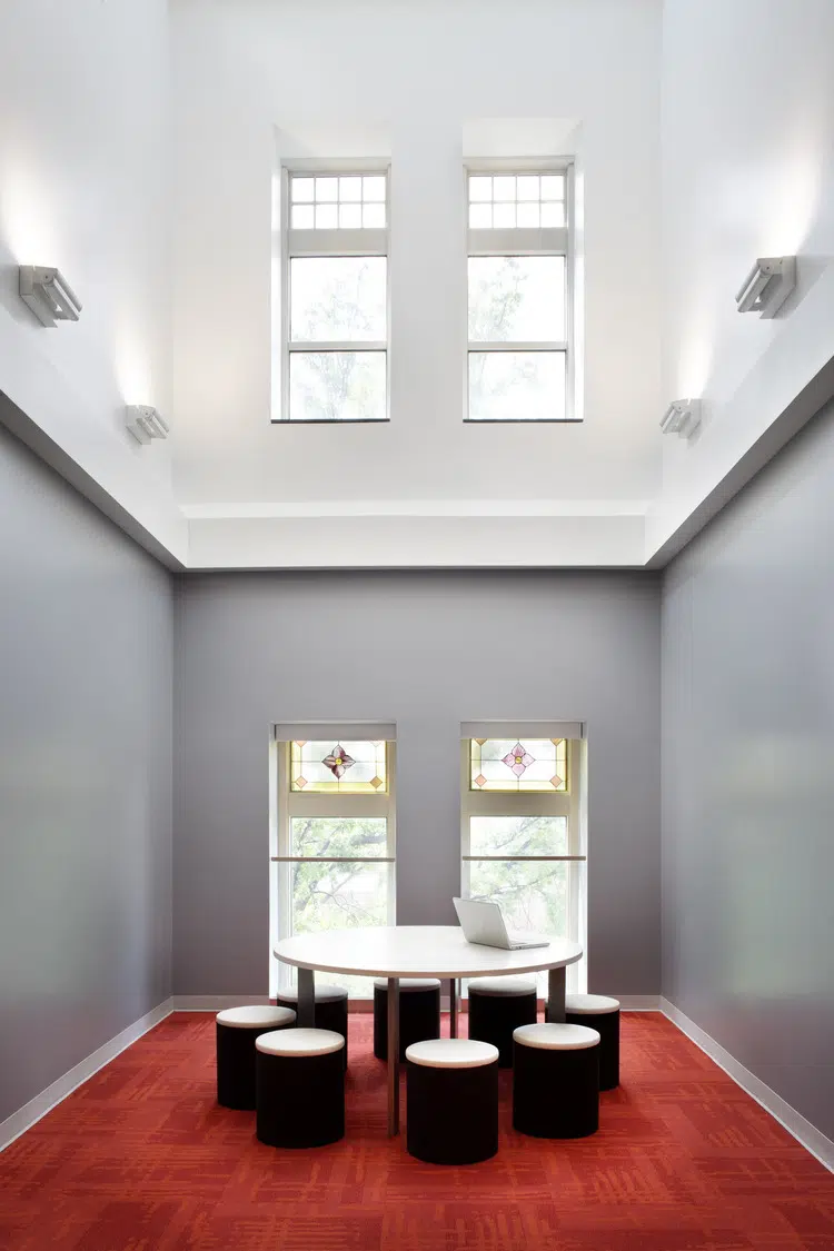 The project for the School of Journalism included the new Reynolds Journalism Institute located between the Sociology Hall (ca 1892) and Walter Williams Hall (ca 1935). Each of the existing historic buildings were evaluated prior to the development of the design. The Sociology building had been vacant for several years and was in need of extensive work due to the lack of conditioning and attention while vacant. Walter Williams Hall was occupied at the commencement of the project, but was in need of maintenance repairs. Both buildings required cleaning of stone and brick, repointing, window replacement, new roofs, new interior finishes, restoration of terrazzo floors and stairs, new lighting and mechanical systems.