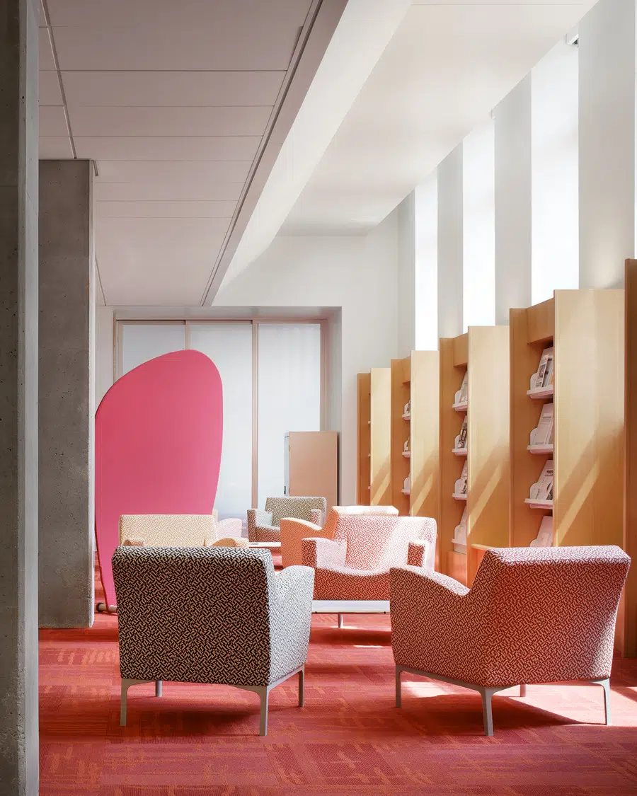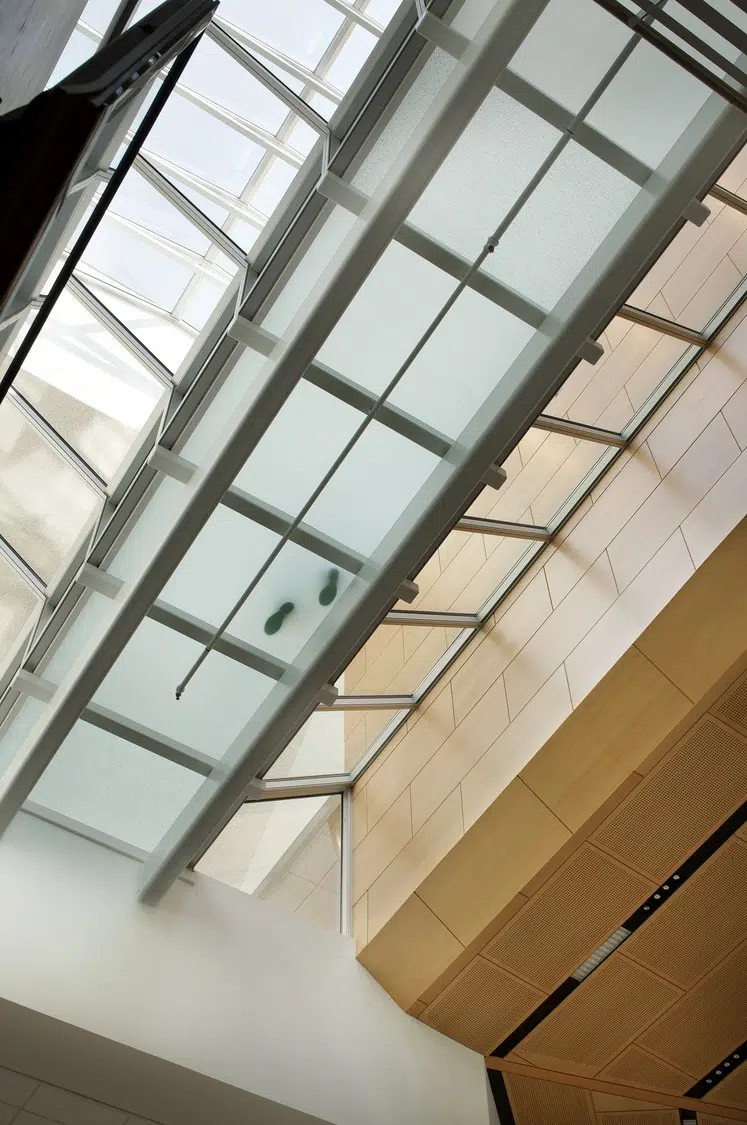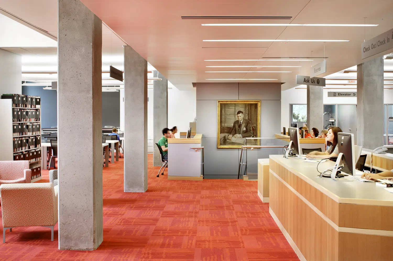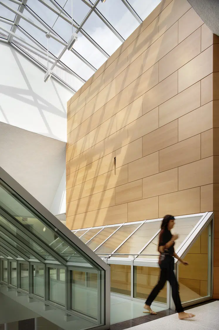 The resulting 47,000 SF facility is connected, functional and easily navigated. Inside, labs, classrooms, lecture halls, meeting rooms, library facilities, office spaces and other resources provide modern amenities with a user-friendly aesthetic and easily accessible technology. The new RJI facility creates continuity and a sense of place within the Quadrangle while enhancing the School of Journalism and the overall campus.