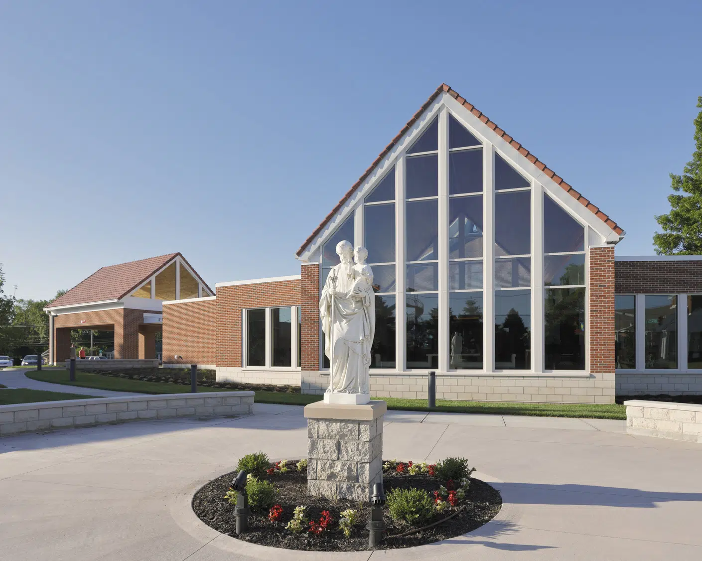 The new glass-fronted, light-filled narthex of St. Joseph Catholic Church provides much needed gathering space for fellowship while acting as a beacon to the community. Featured in the new narthex are a bride’s room, which doubles as a cry room during mass, accessible restrooms, gift shop and a variety of seating areas. A new, covered main entrance, signage, walkway and landscaping add to the welcoming appeal of the church.