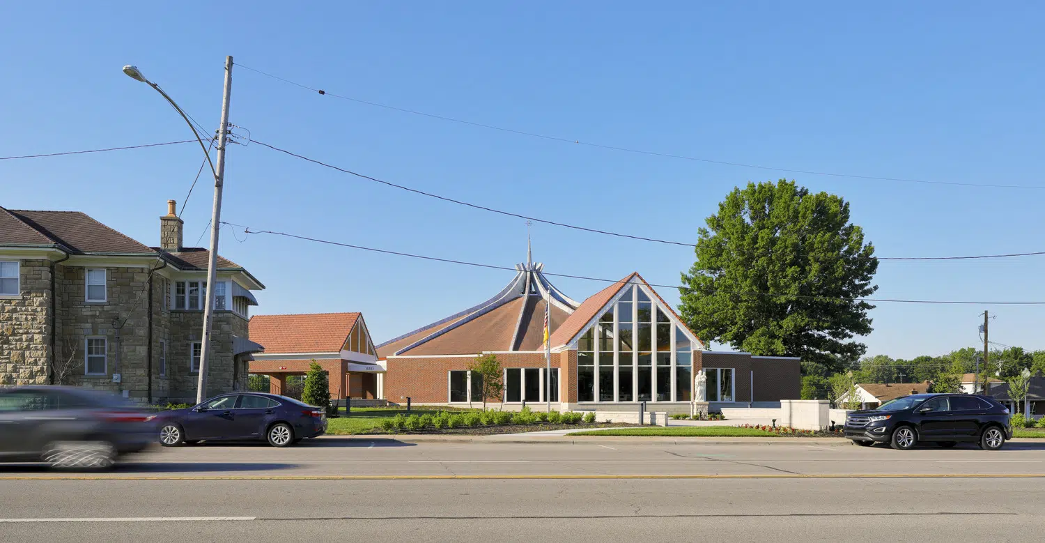 Upgrades to the parish center, housed in the former parish school building, include a new elevator, central air conditioning, replacement windows and an enclosed entrance.