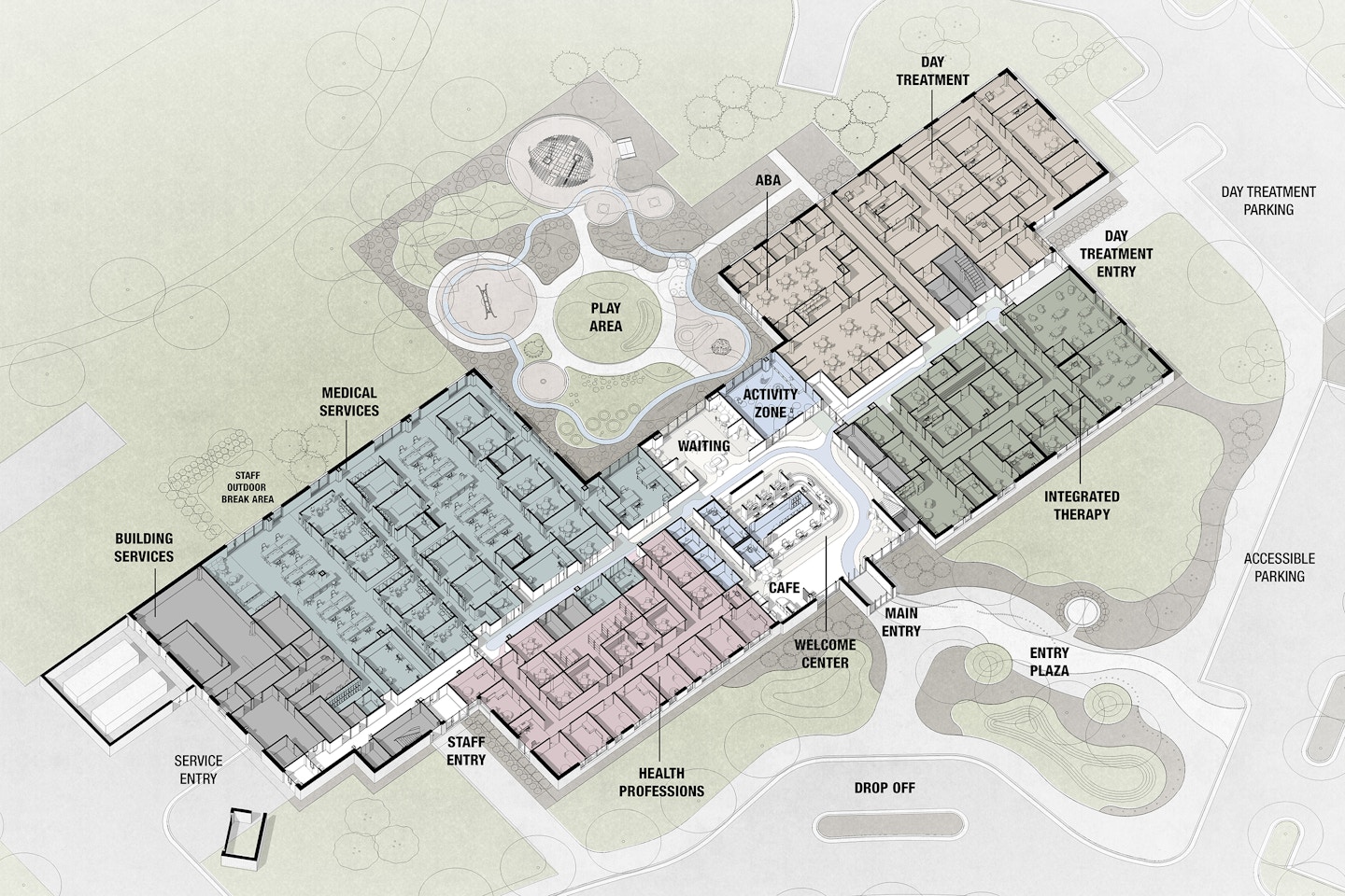 SFS worked with representatives from the Thompson Foundation and Thompson Center in 2008 to develop a master plan that defined programmatic needs, space needs and conceptual designs for a new 75,000 square foot facility. The project brief was to consolidate and expand clinical services and research space, develop new spaces for observation to enhance research, provide integrated training spaces, and create a world-class work environment to attract and retain staff.
