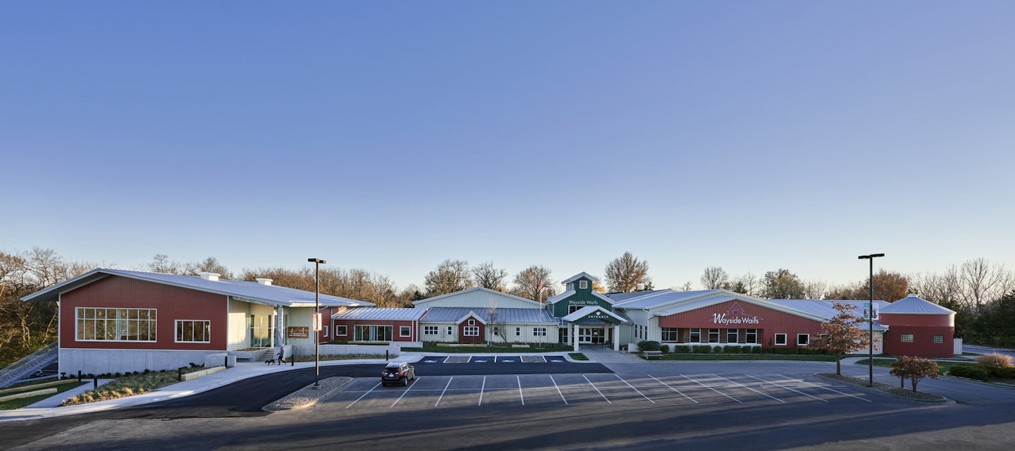 The color palette broadens the existing shelter's vibrance and rural agricultural architecture.